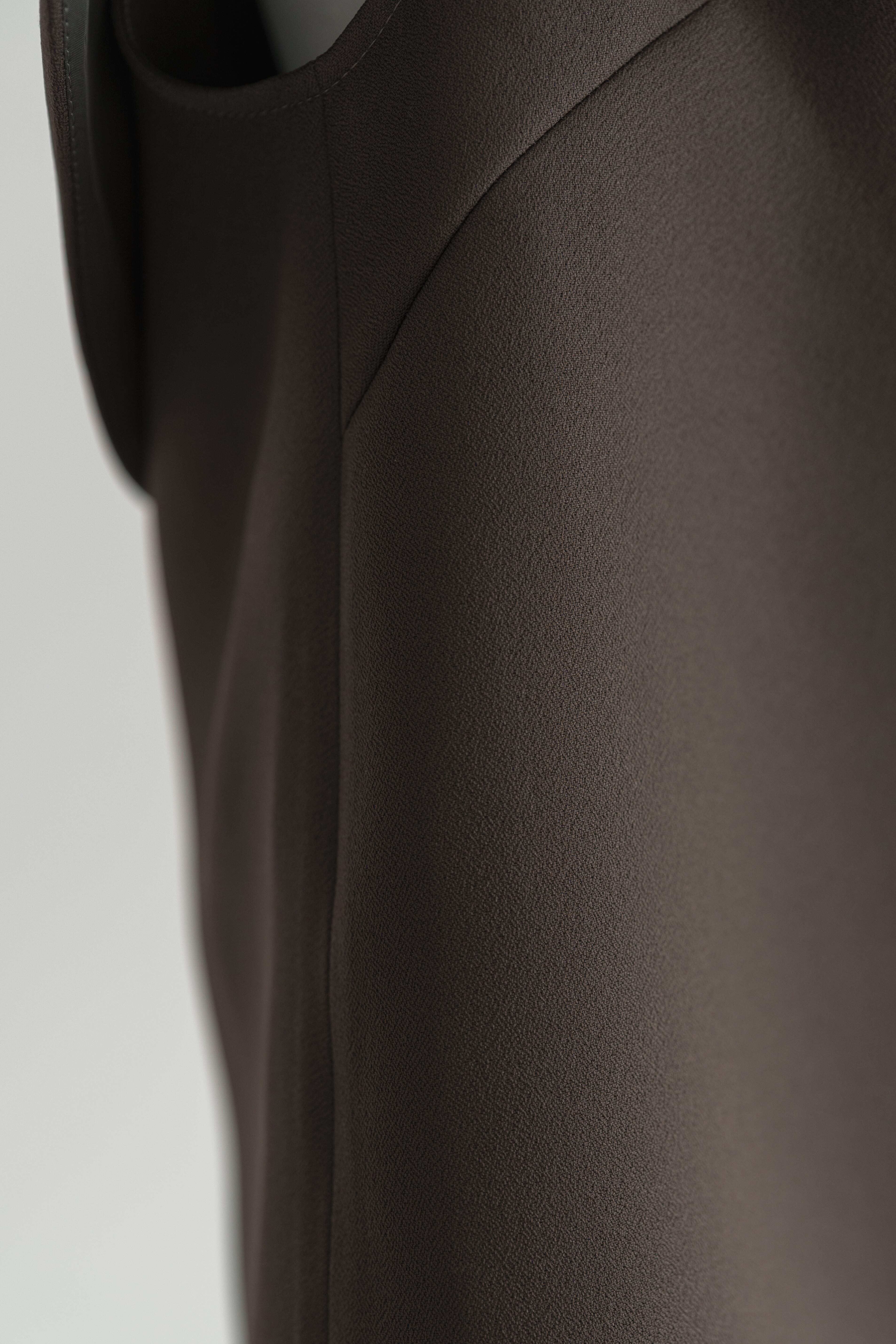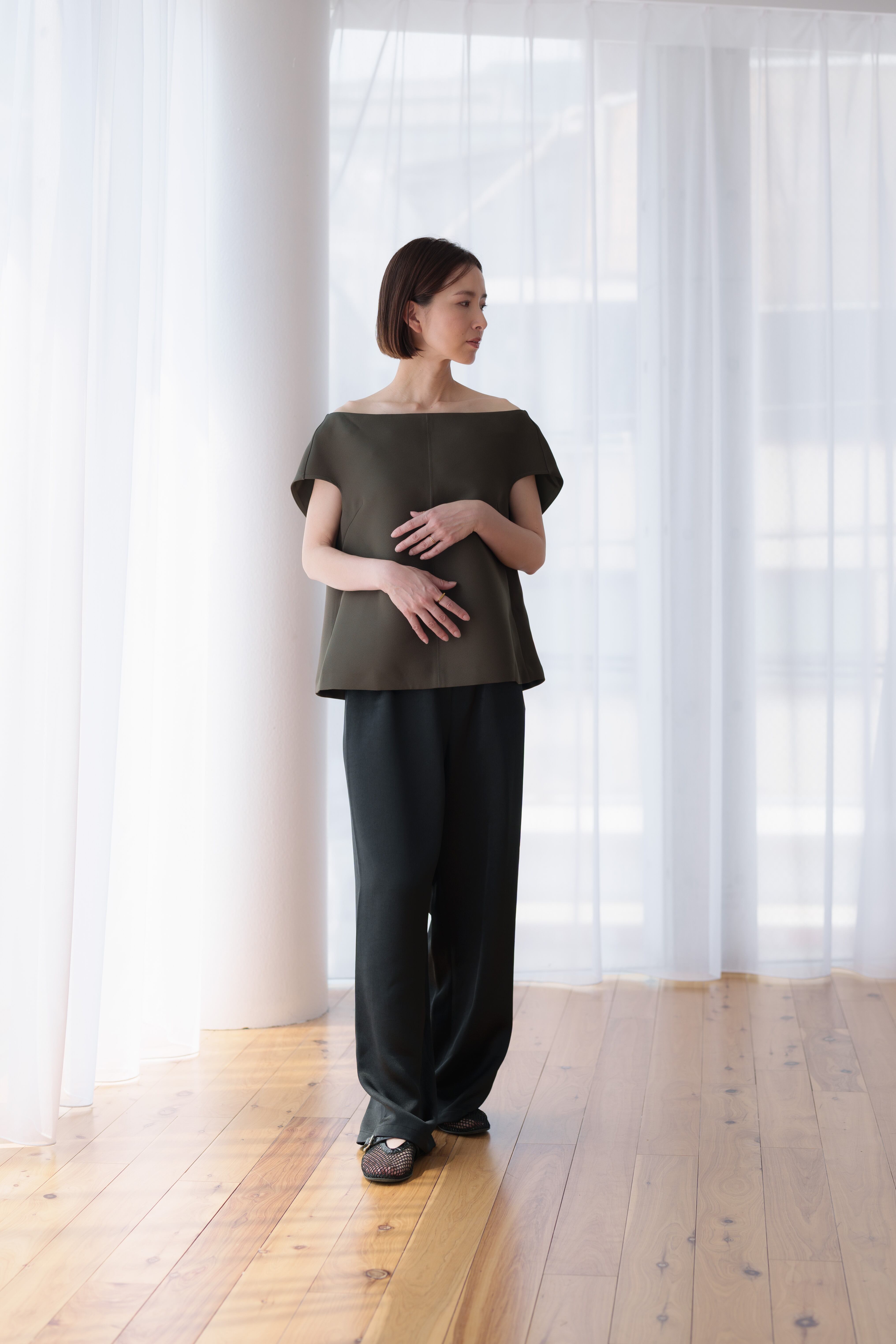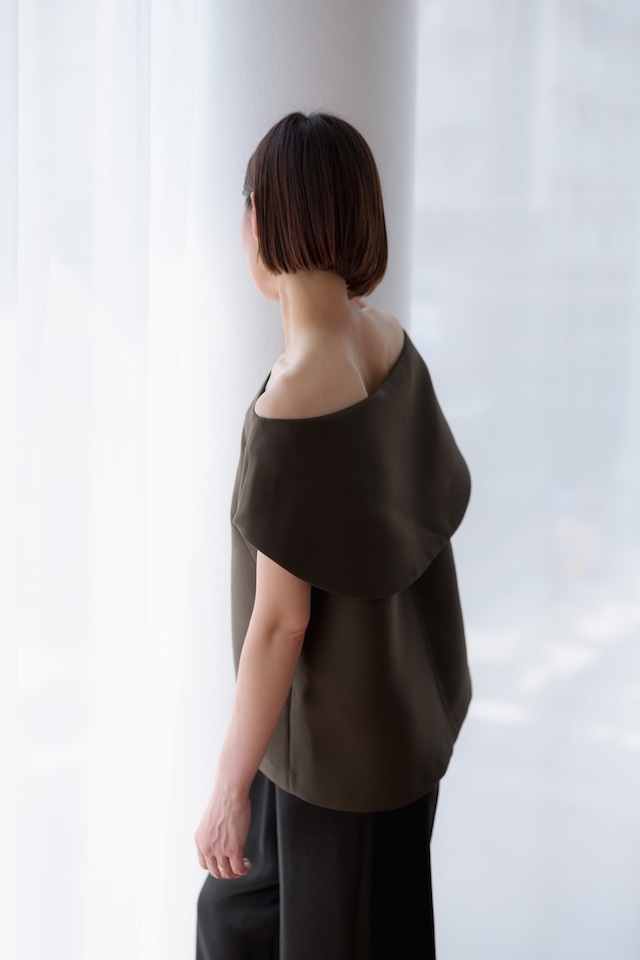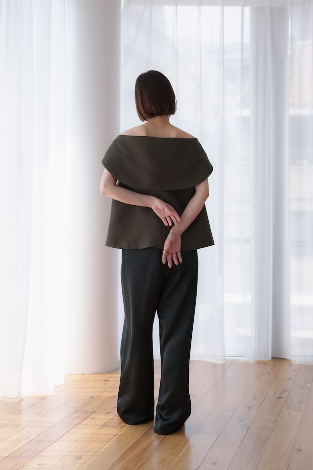 余計な装飾を削ぎ落としたミニマルな一枚ながら、立体的なシルエットが角度によって表情を変え、凛とした存在感を纏わせます。