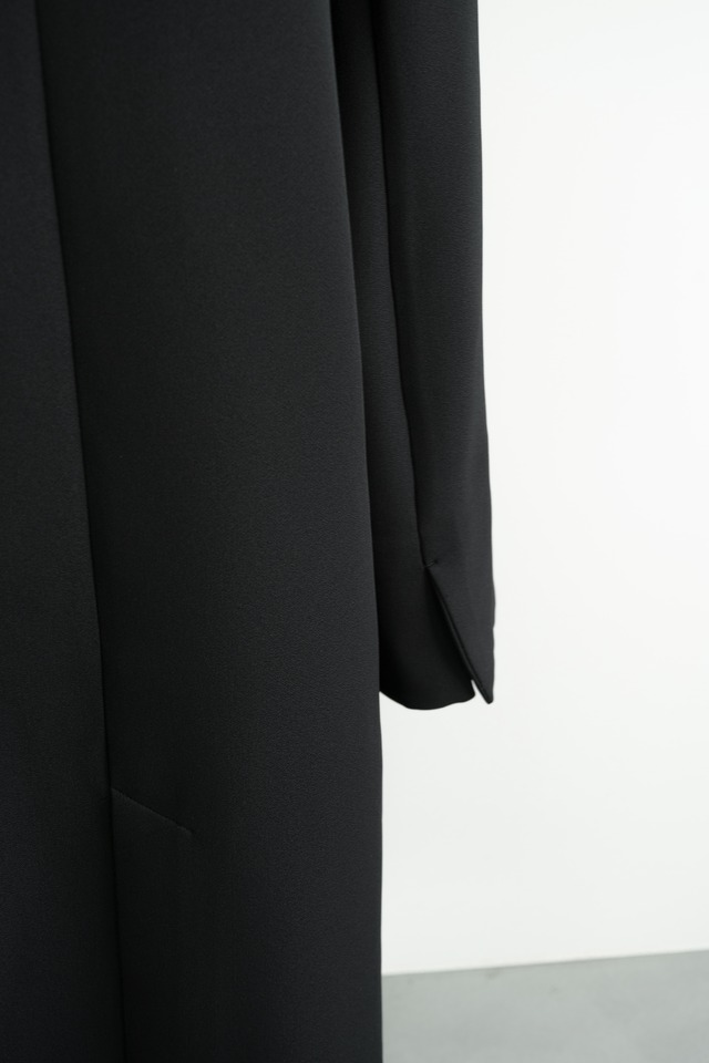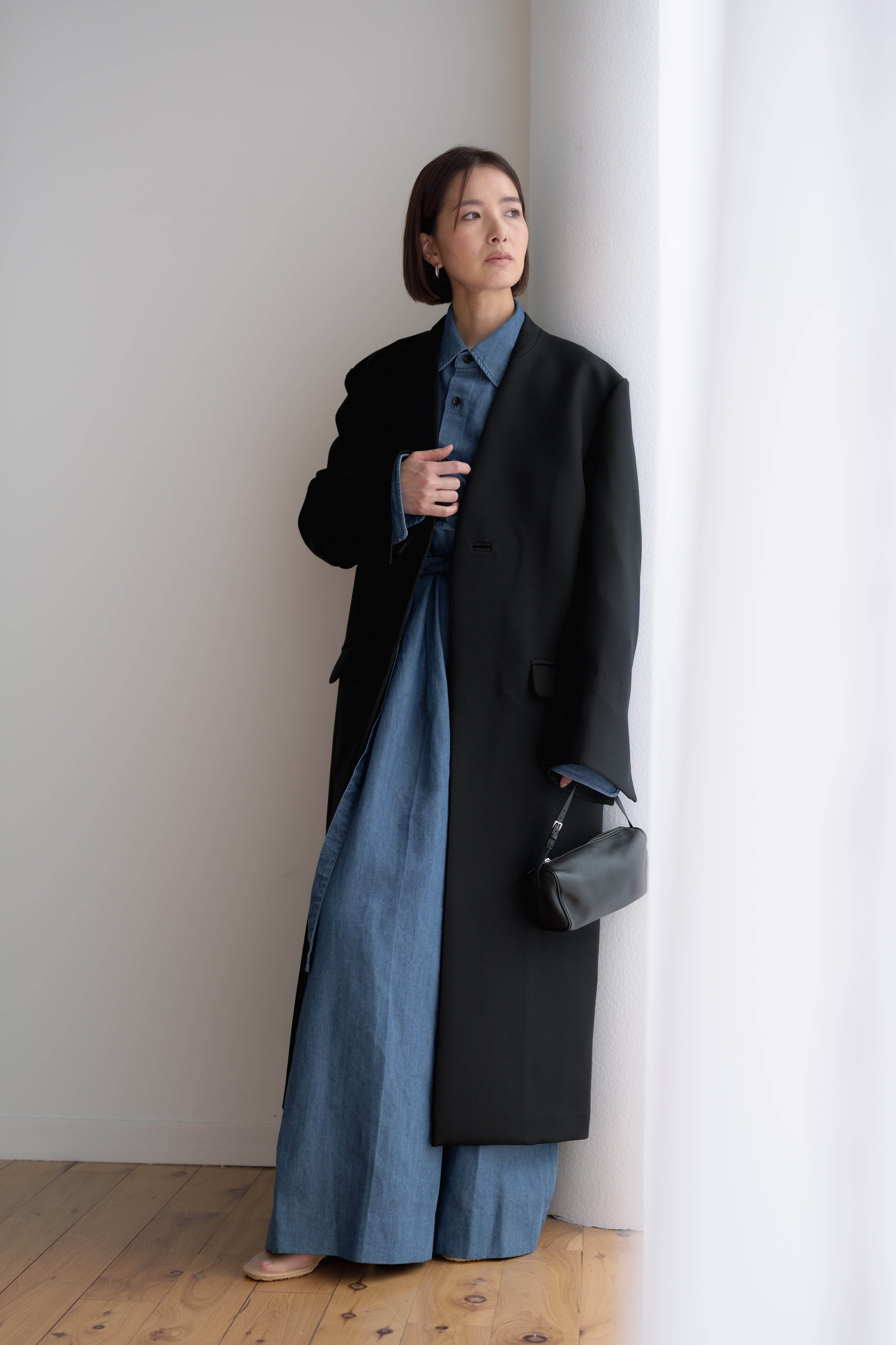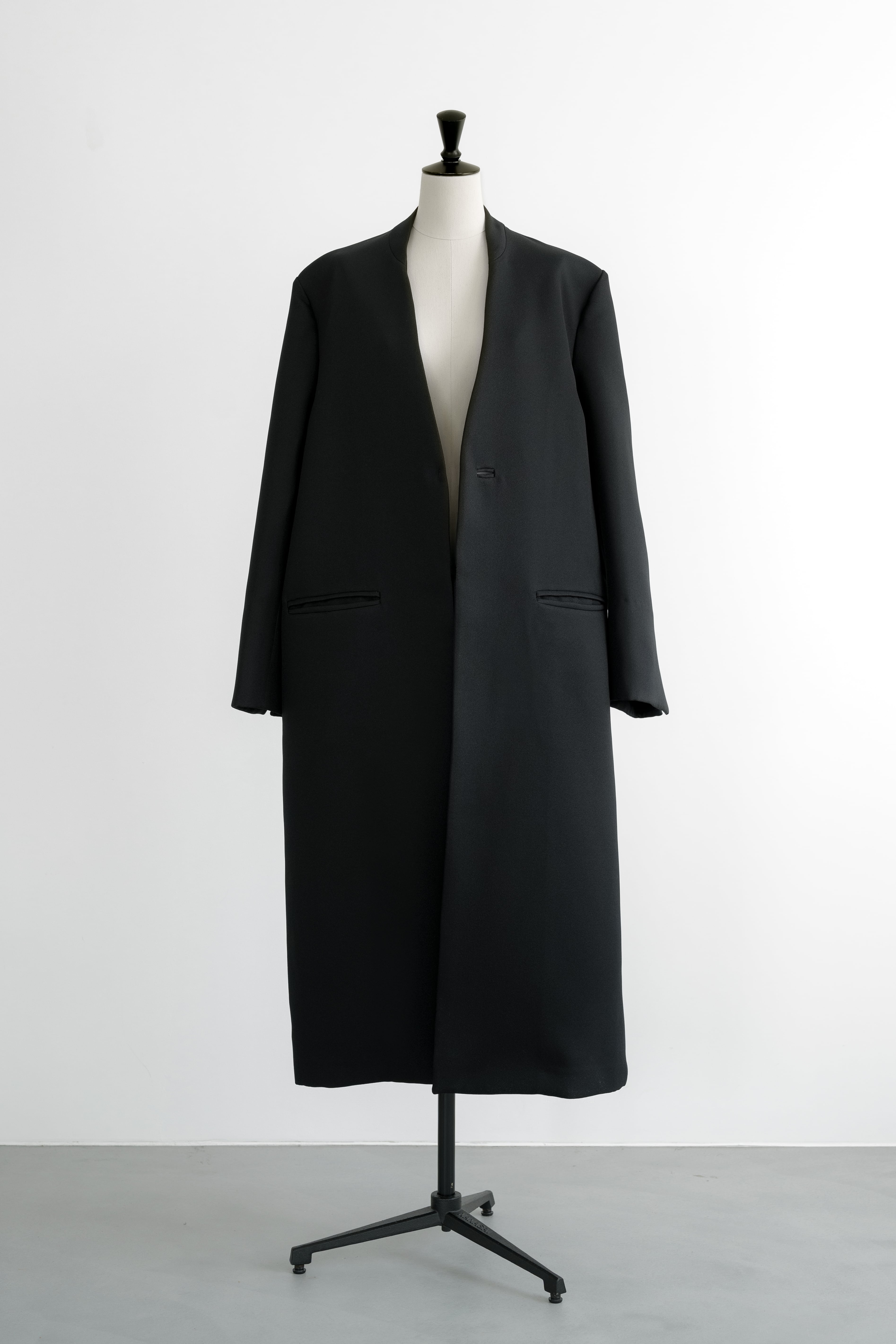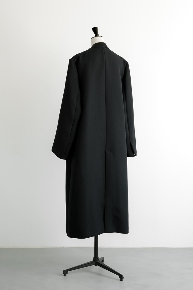 無駄を削ぎ落としたミニマルなデザインで仕立てたロングジャケット。