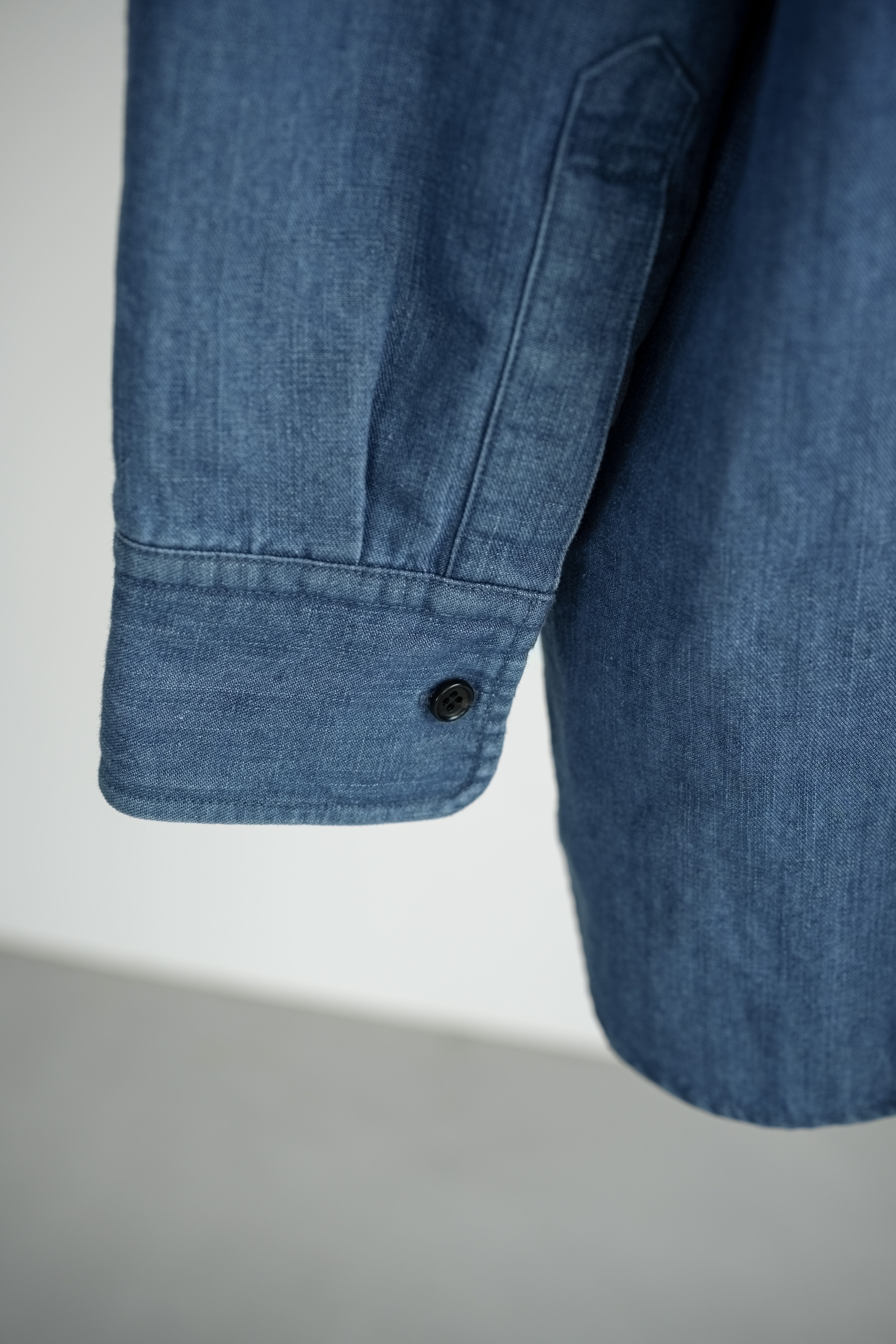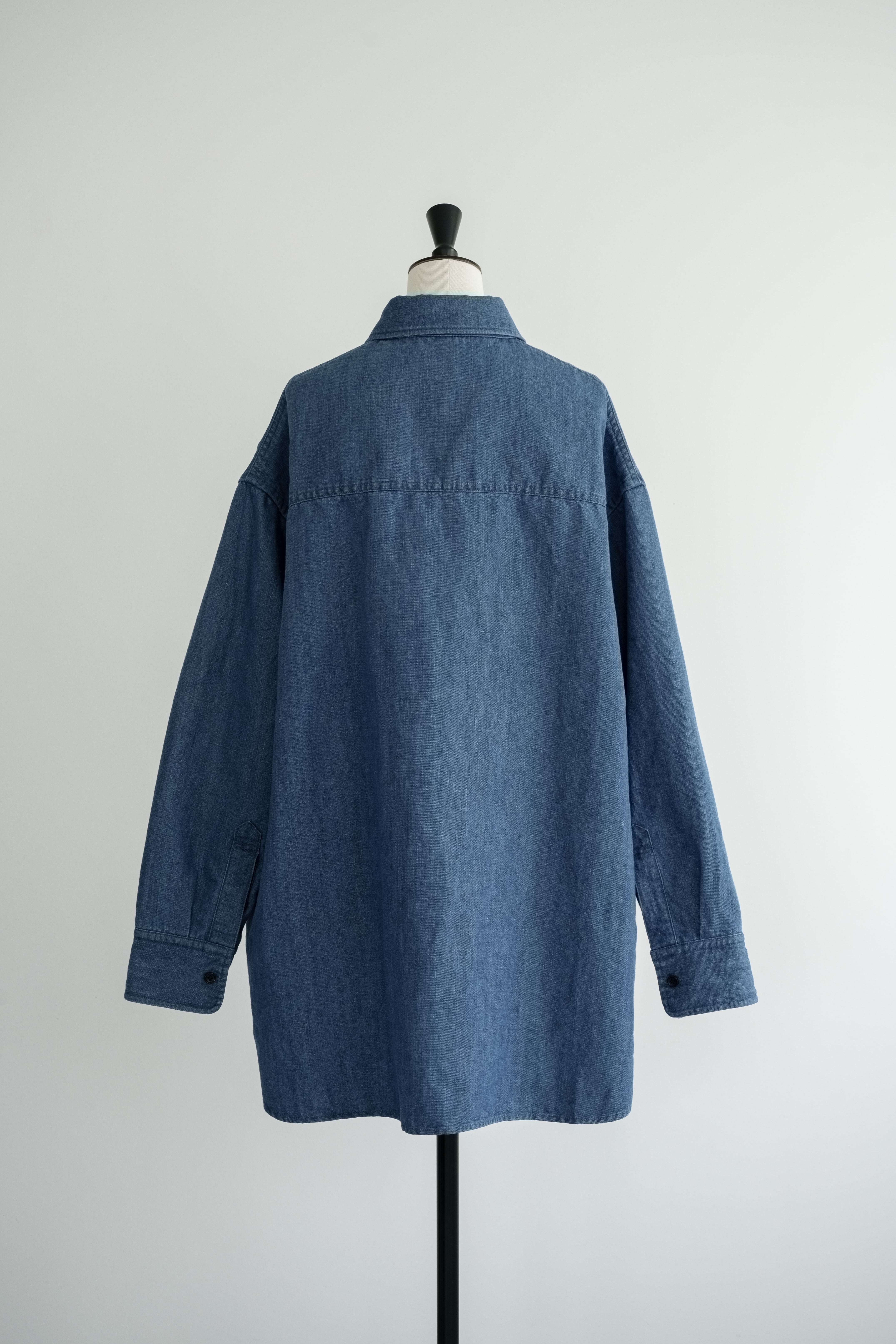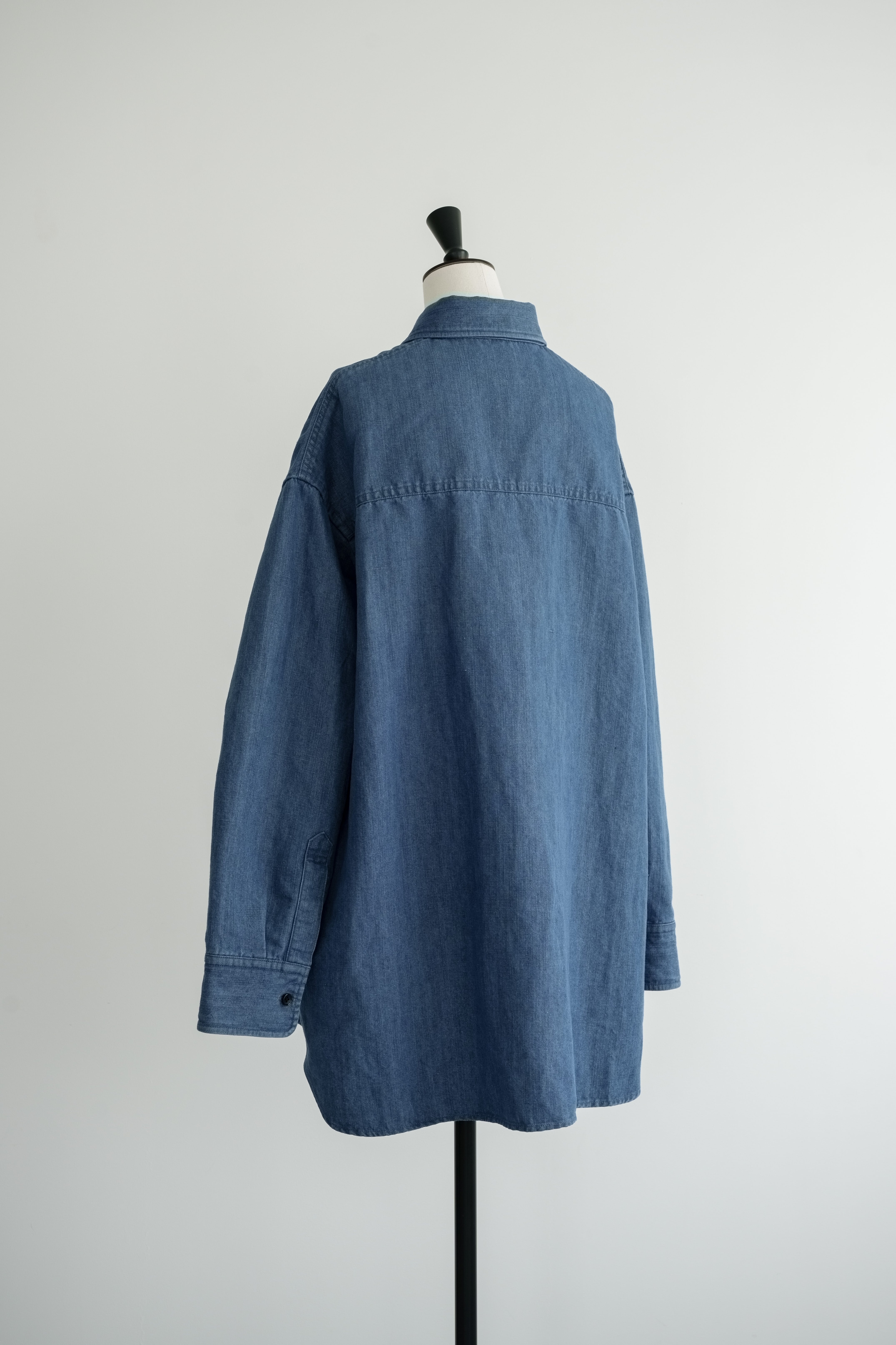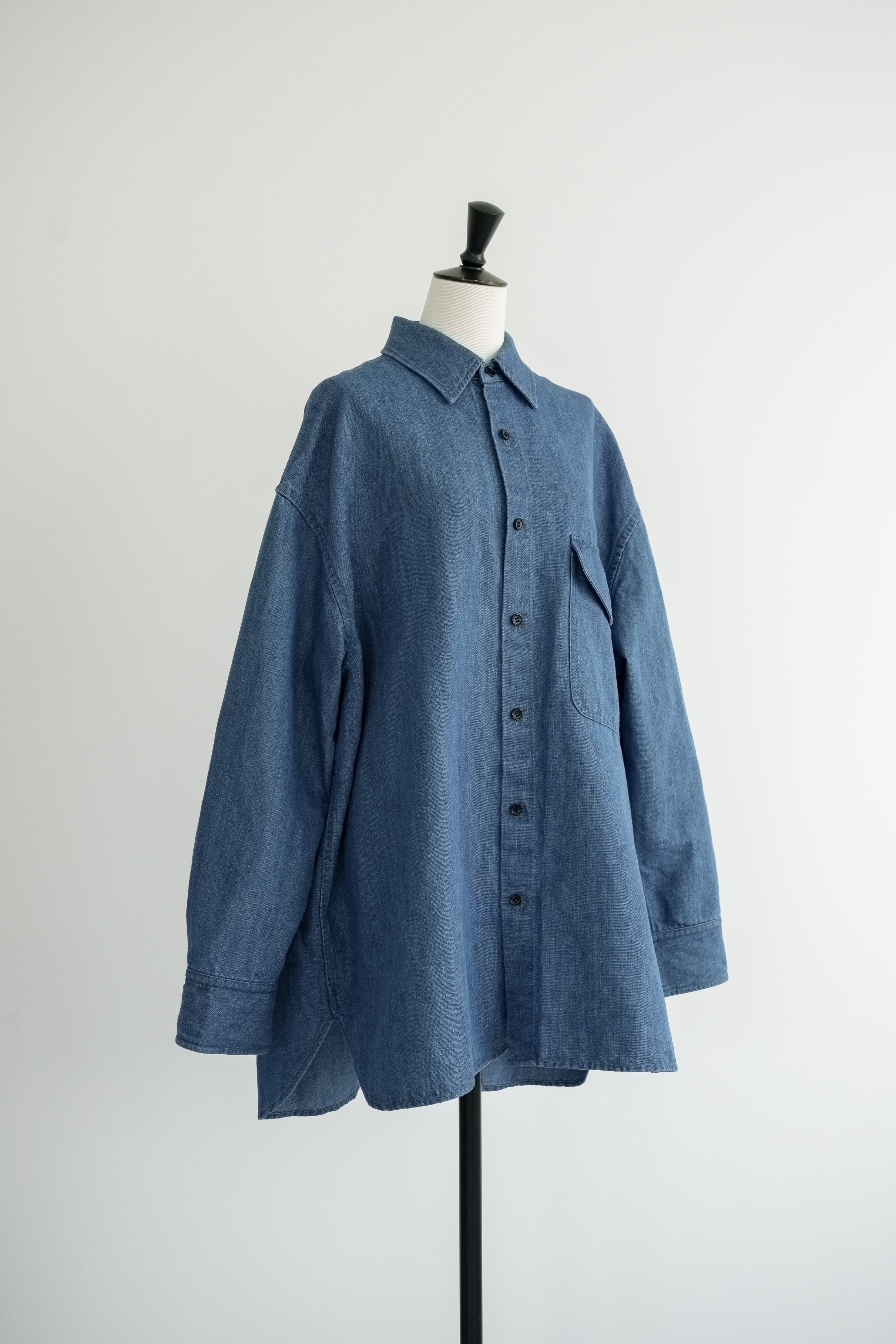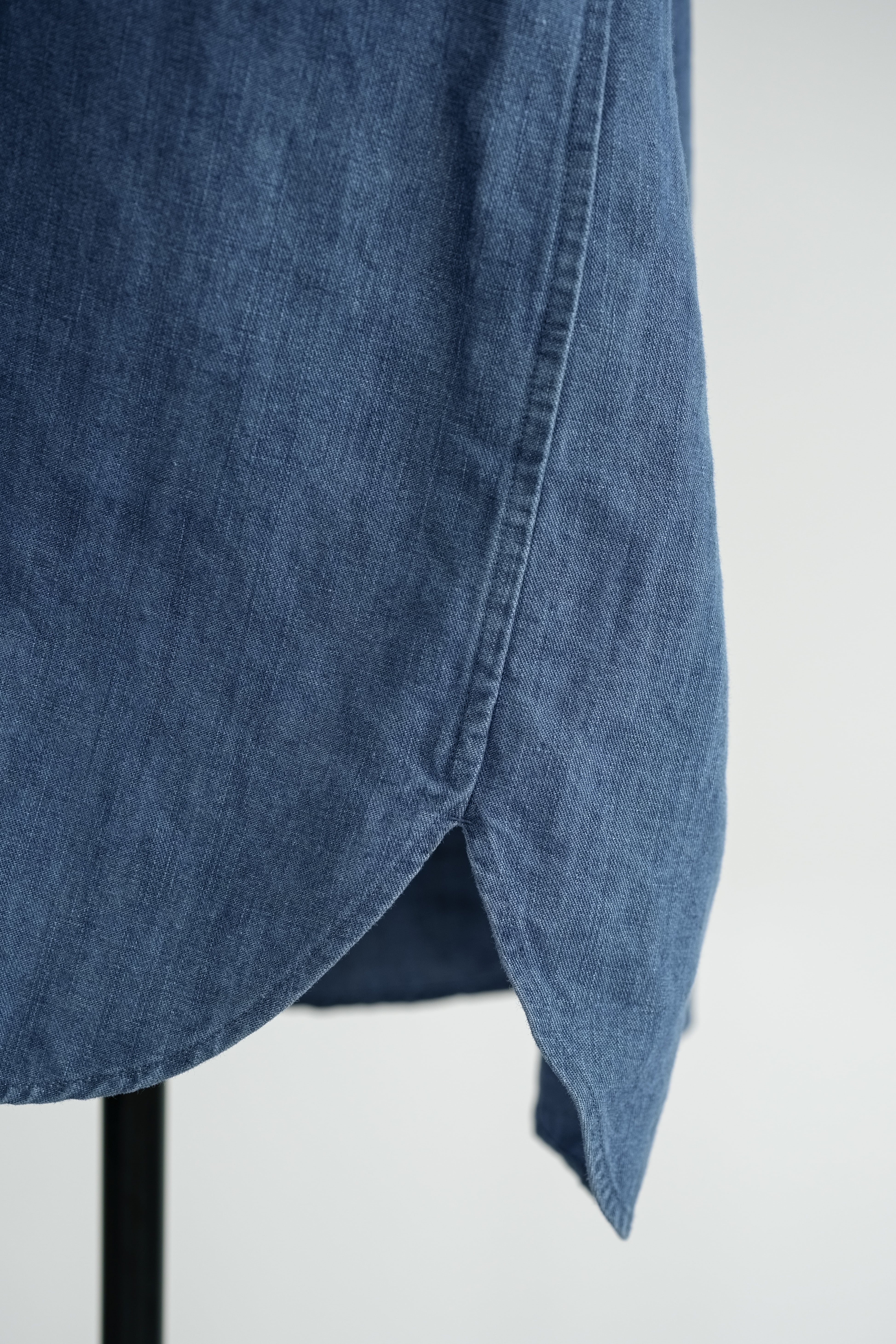 ゆったりとしたオーバーサイズシルエットと、ラウンドカットの裾が魅力のデニムシャツ。