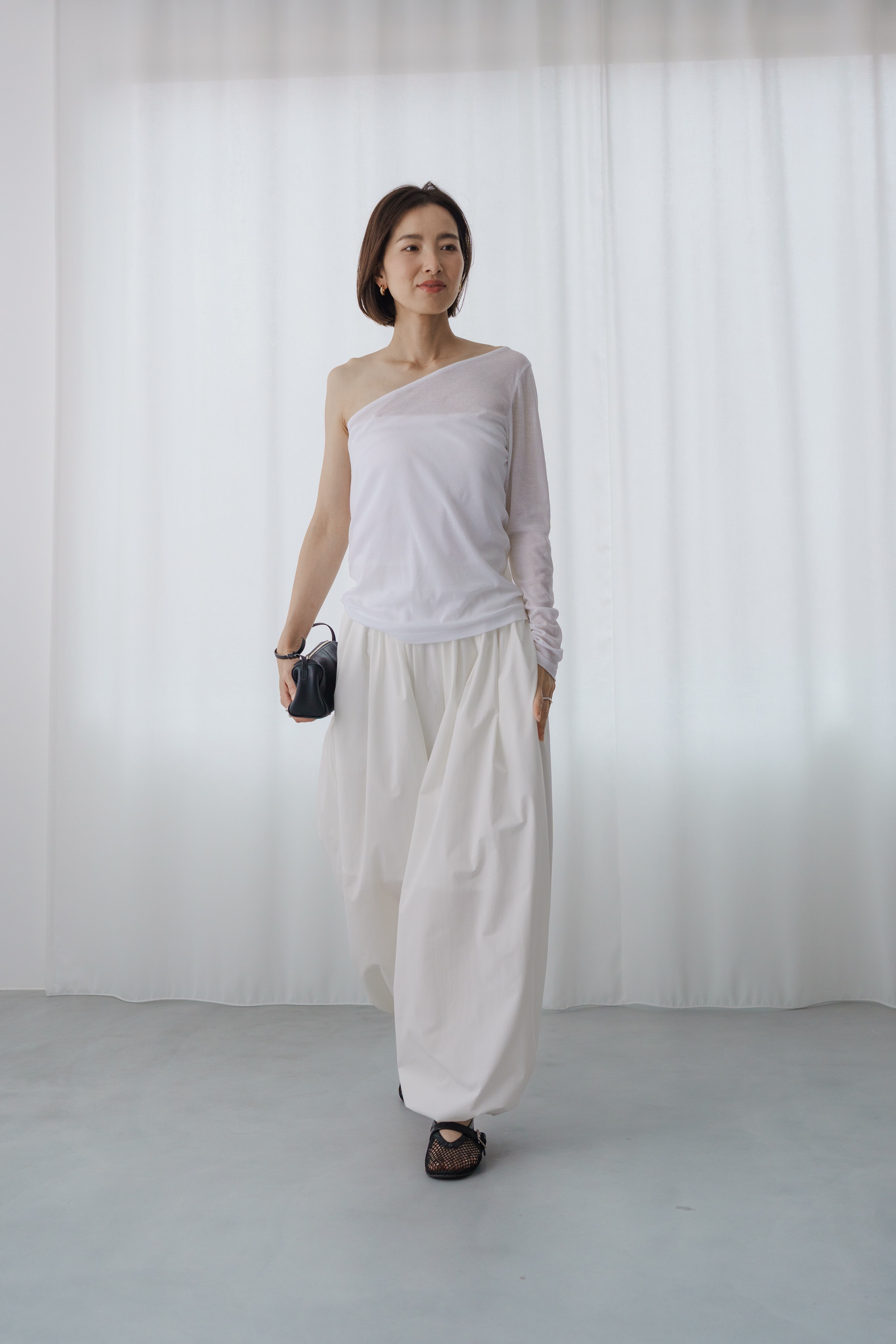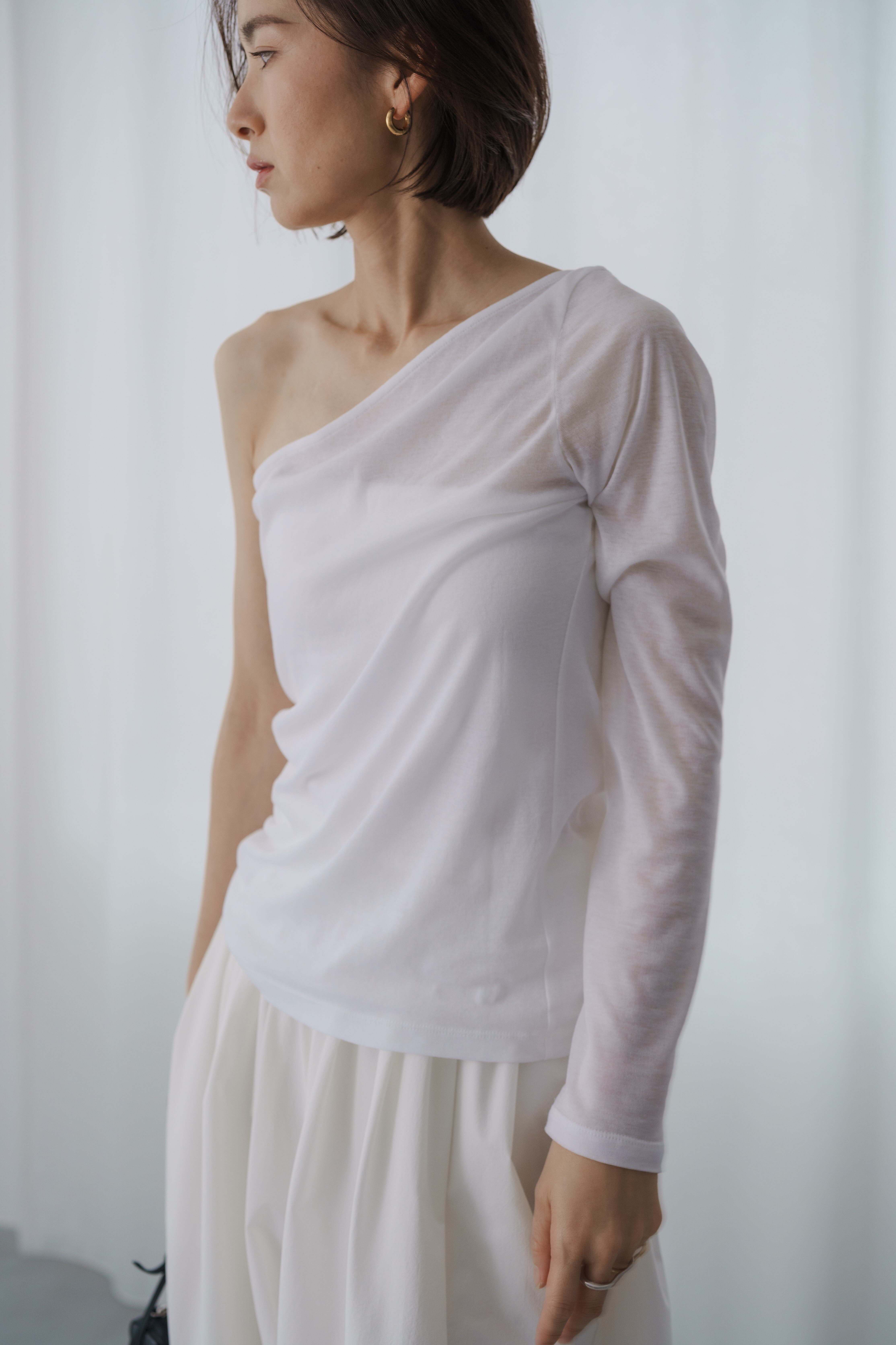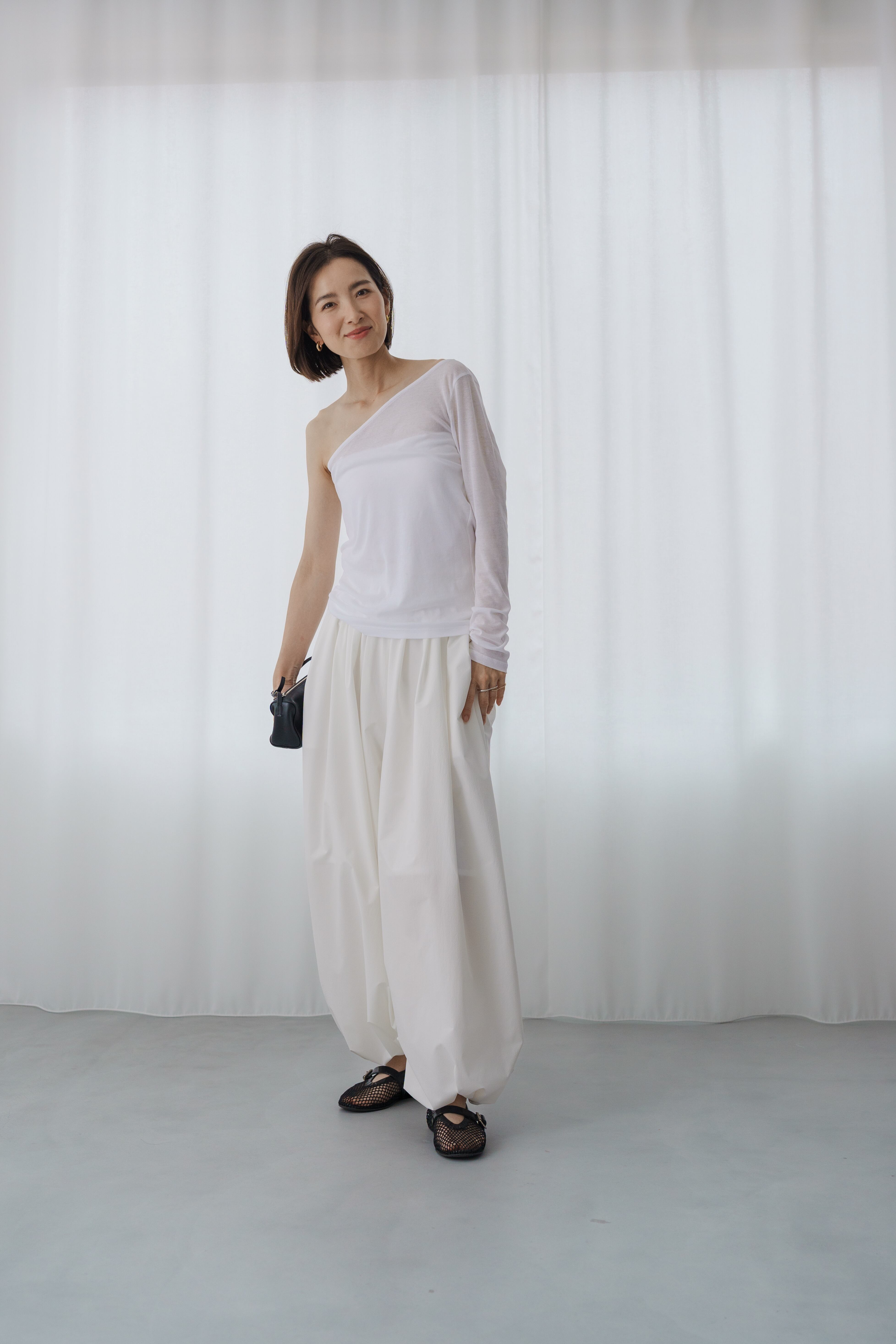 さらりとしたタッチで、シアー素材でありながら、甘くなりすぎない一枚。