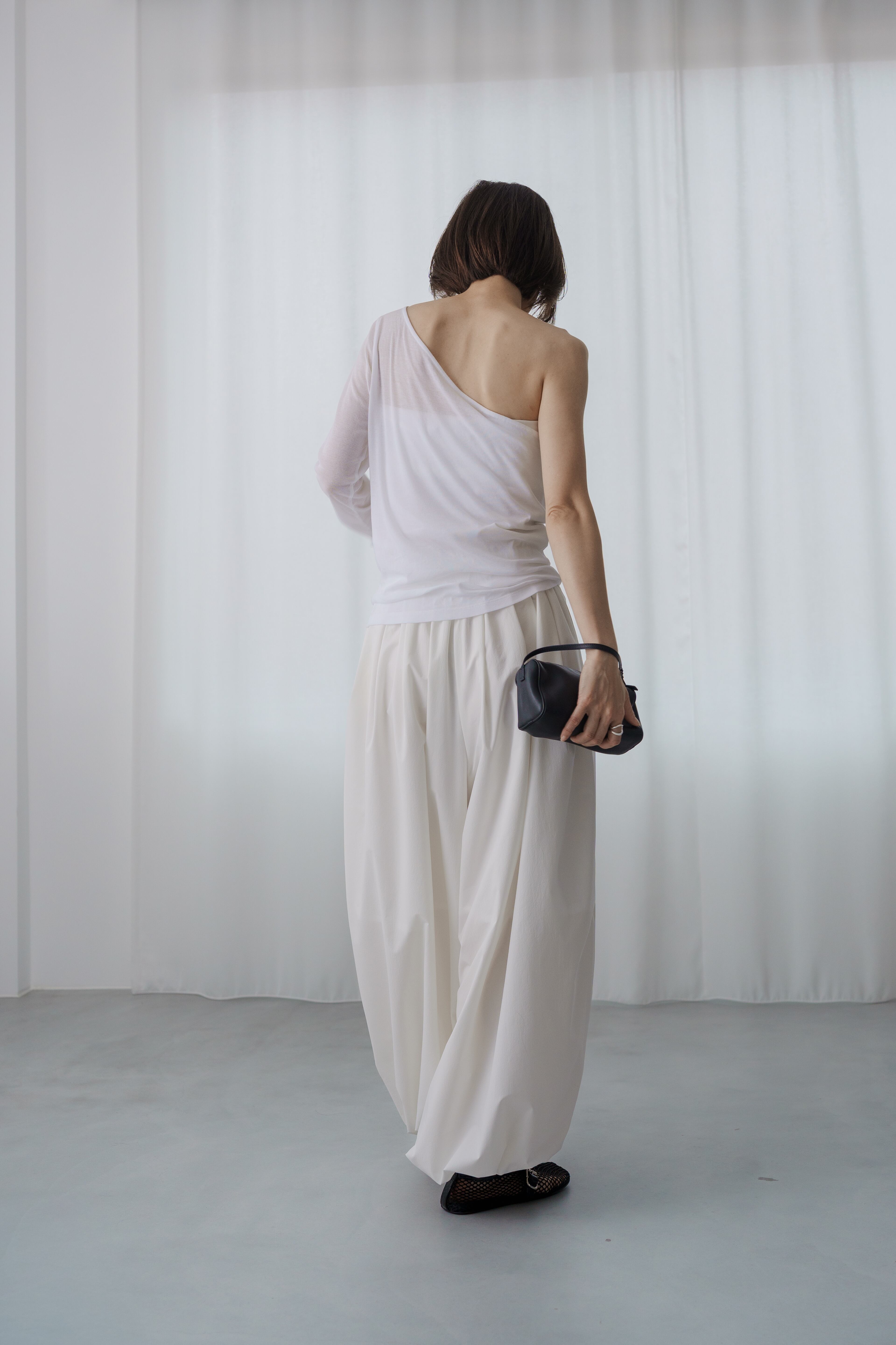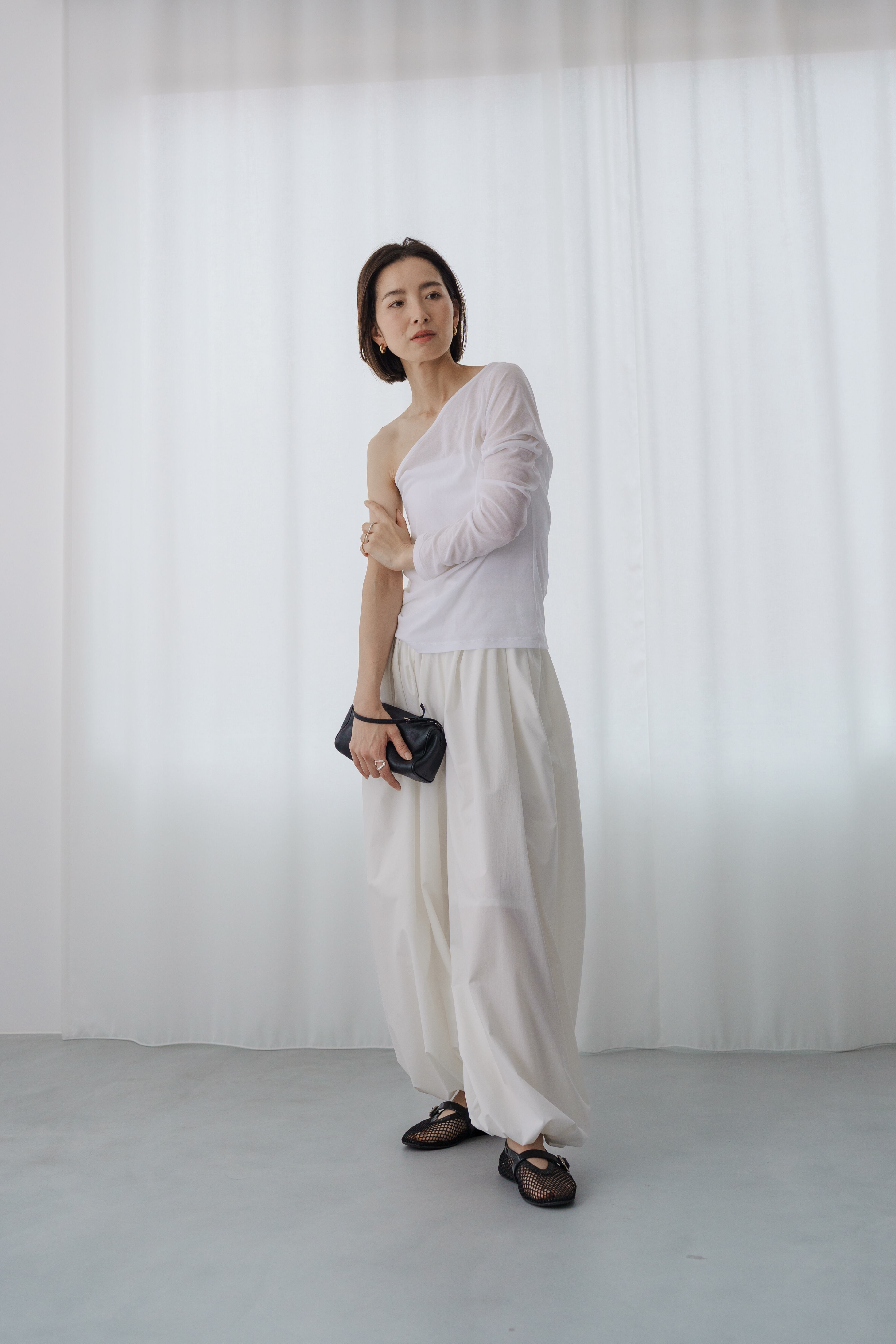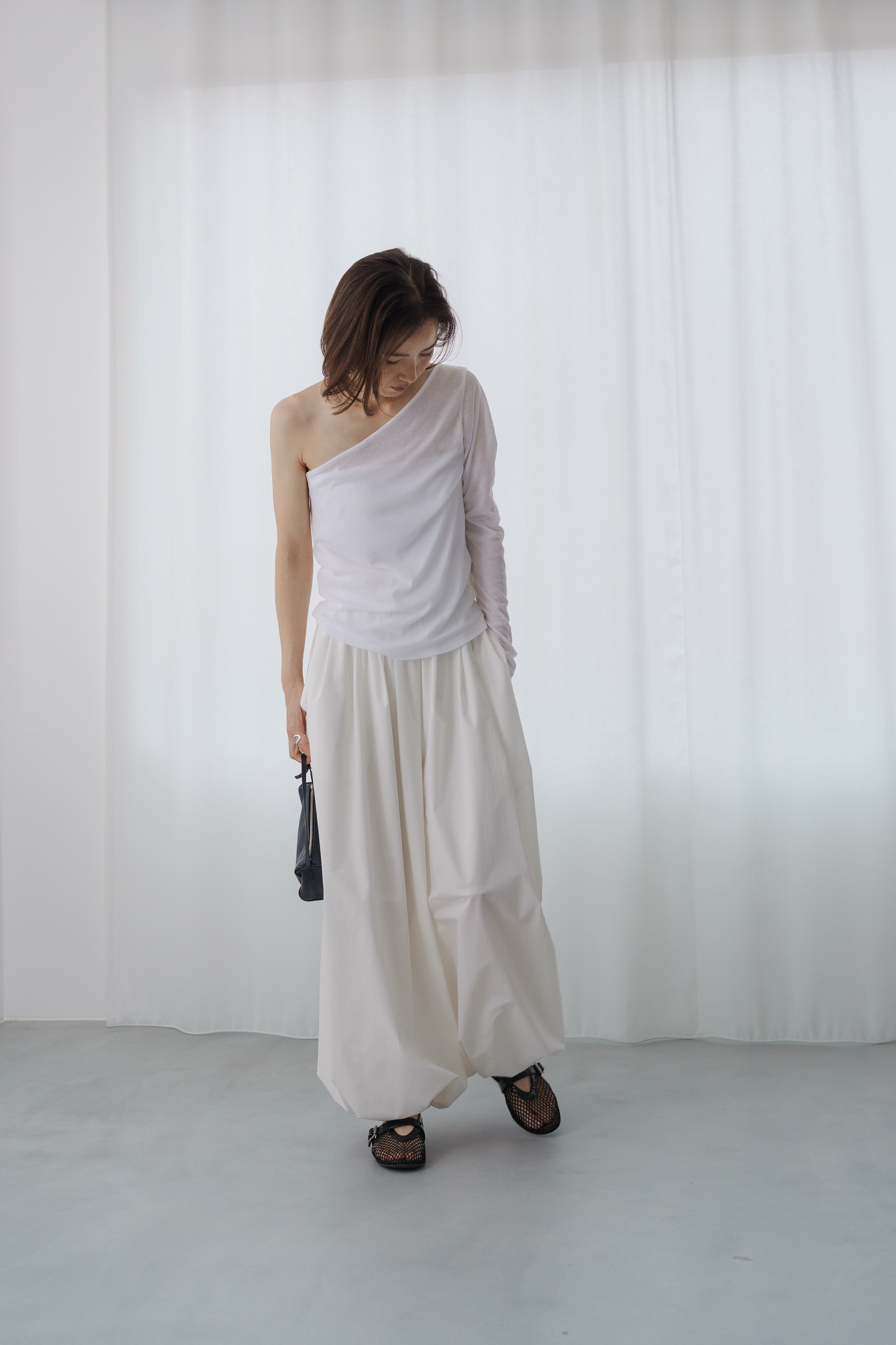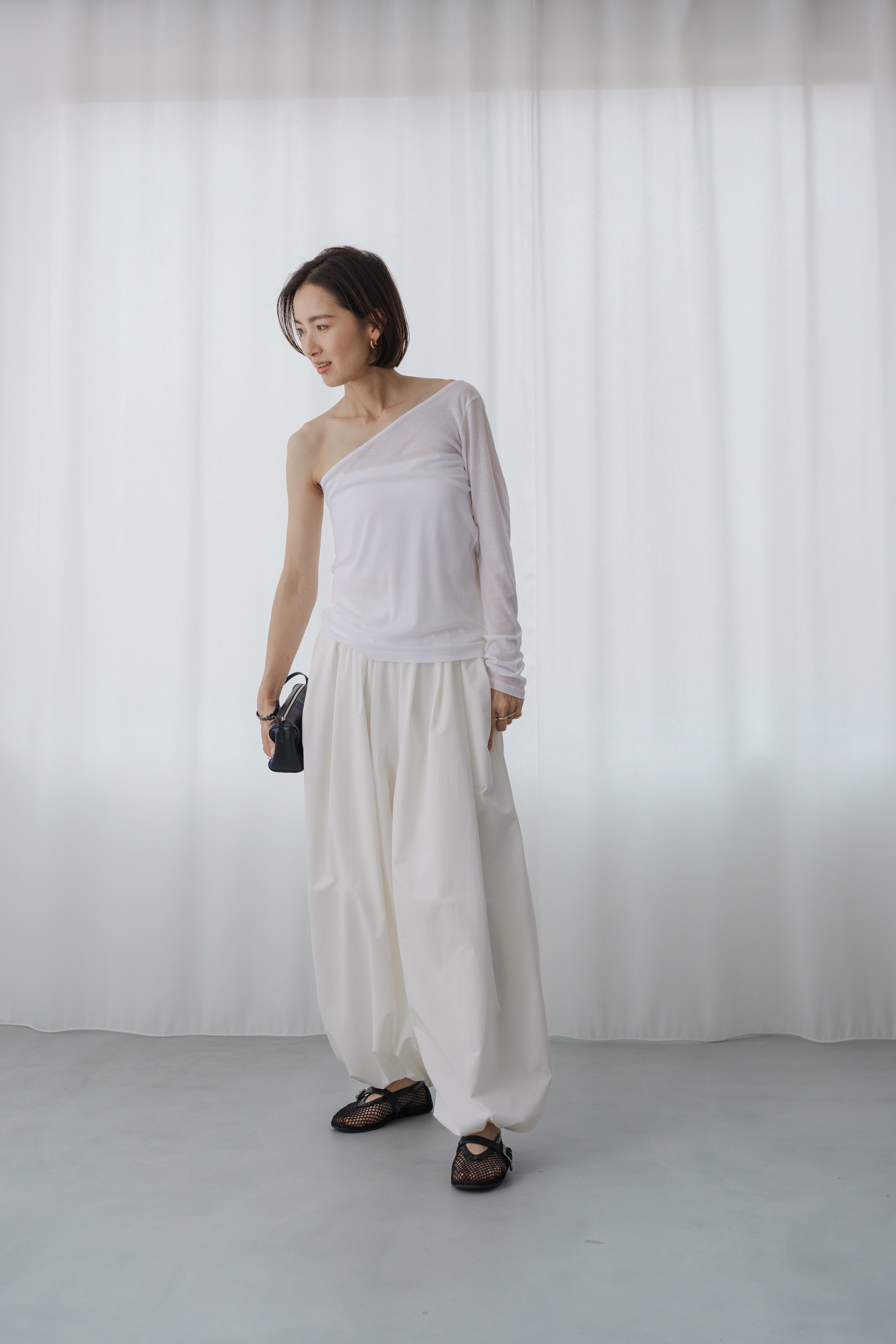 さらりとしたタッチで、シアー素材でありながら、甘くなりすぎない一枚。