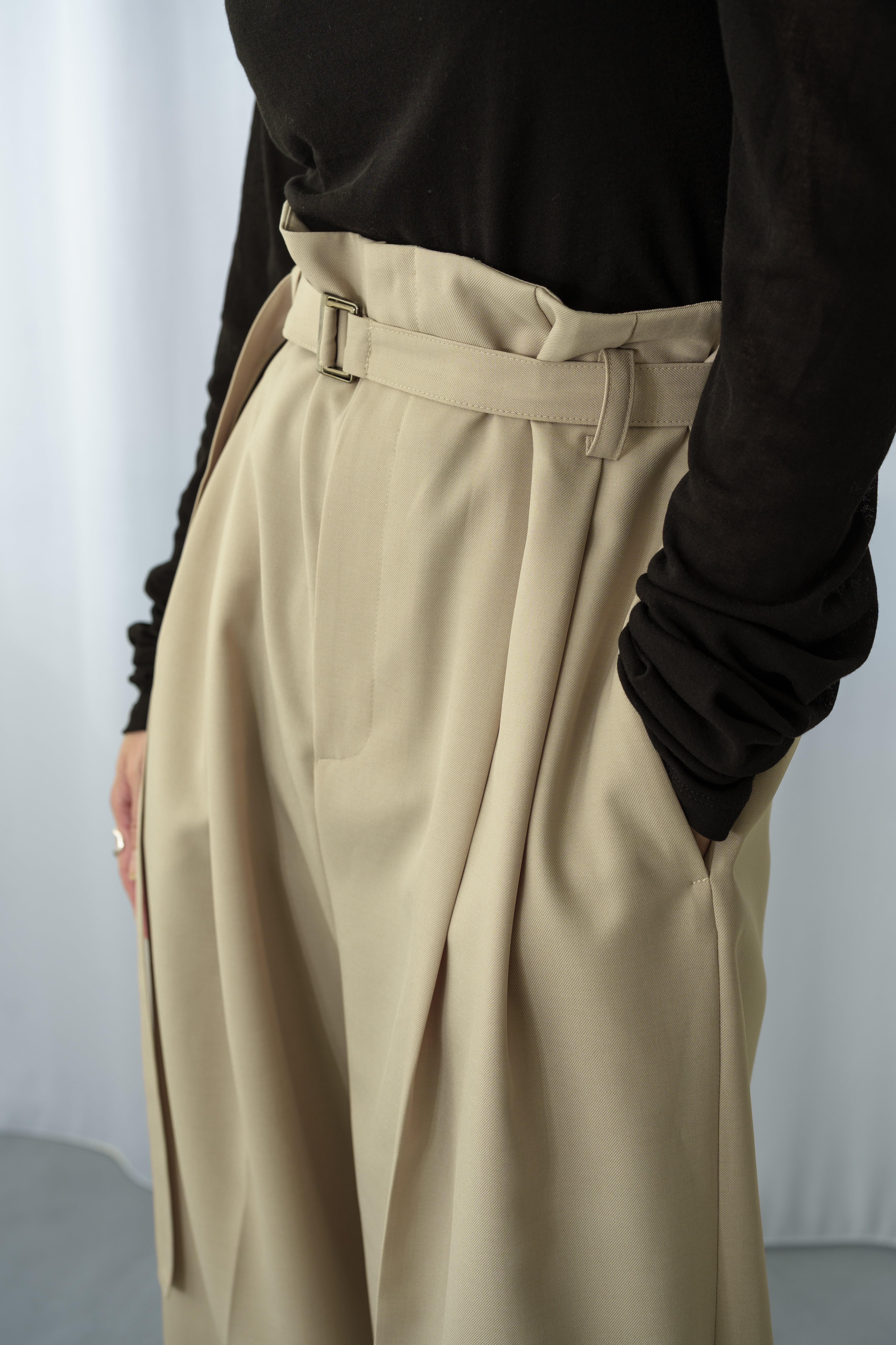 ・ウエストはベルトで調整できるサイズレス仕様