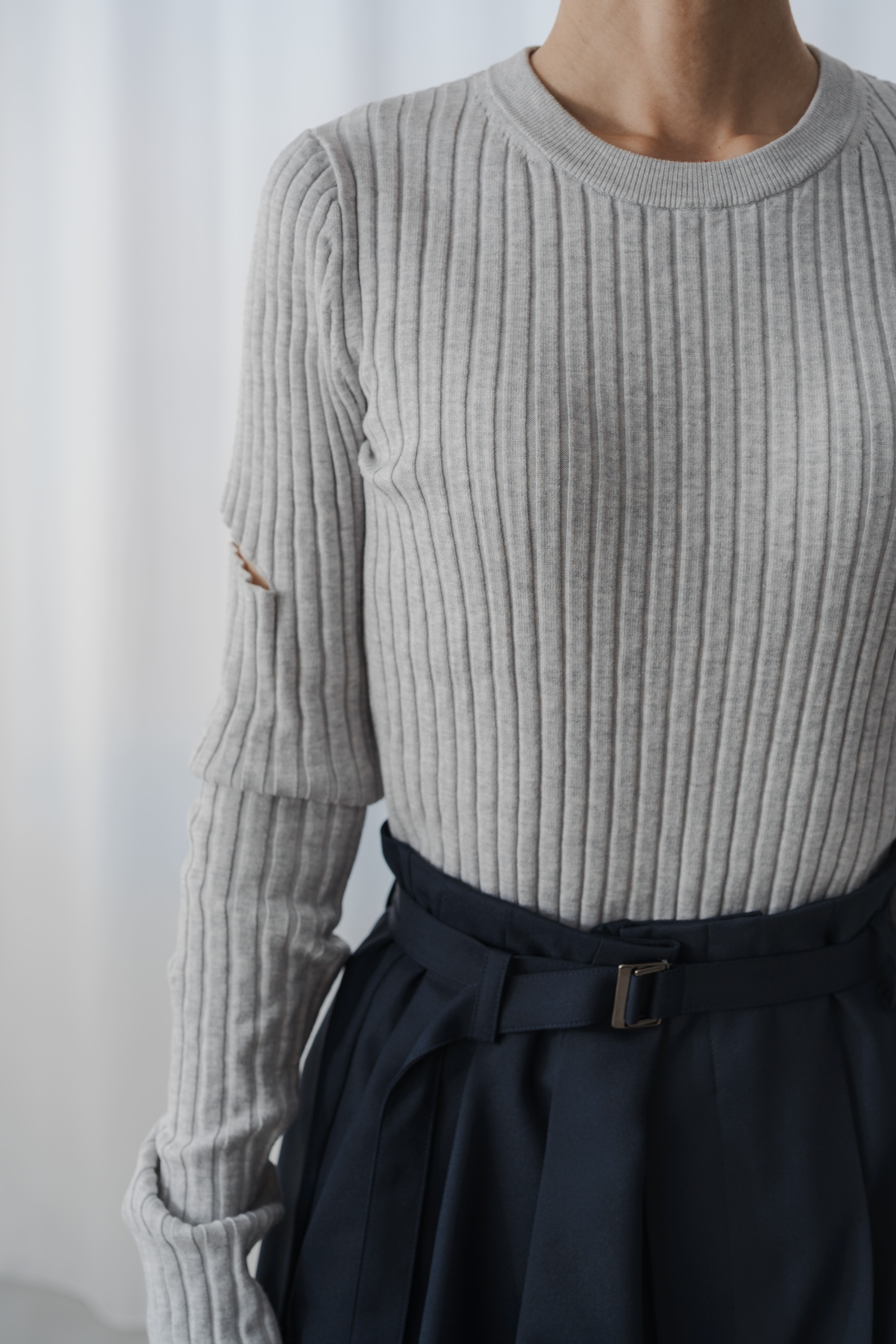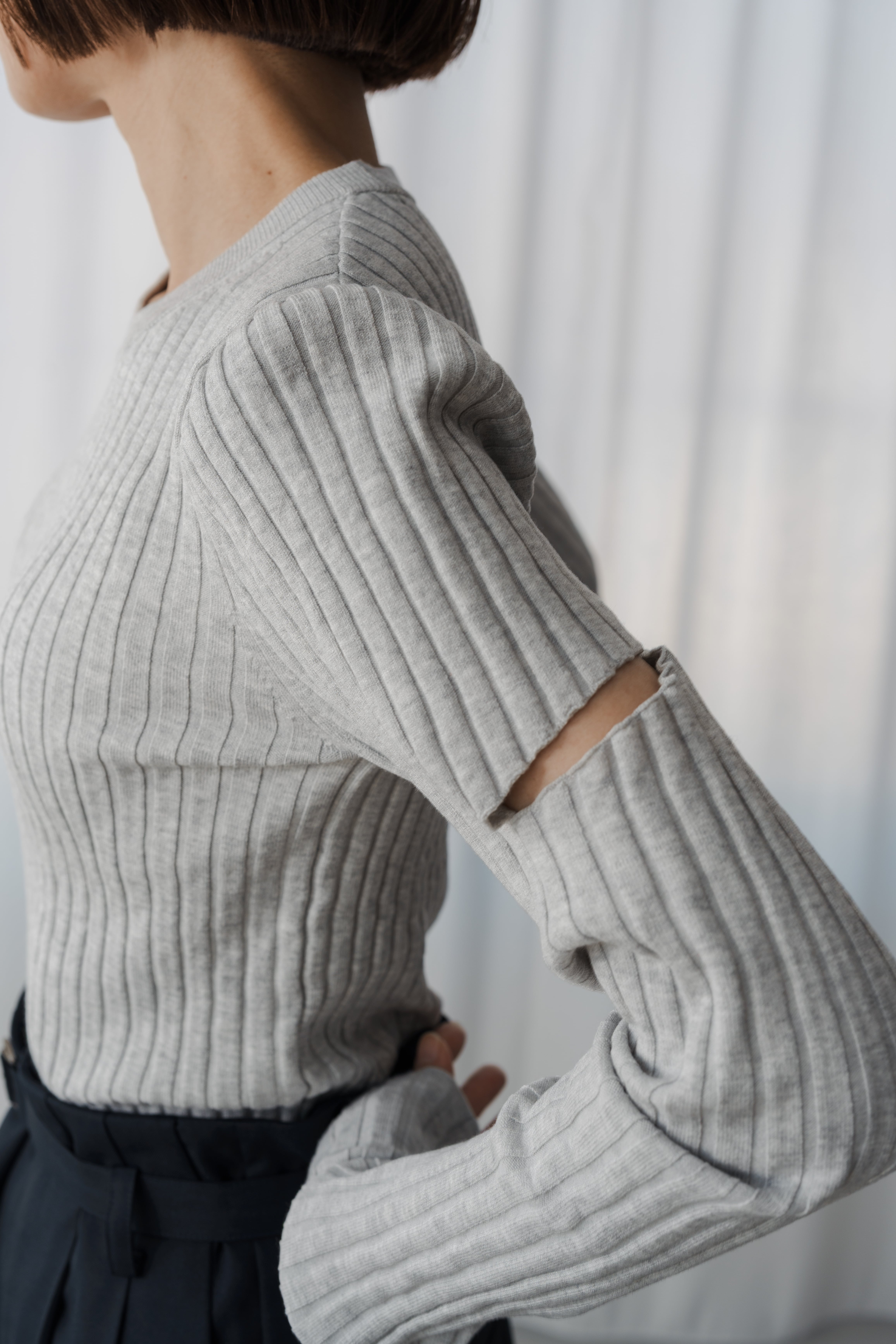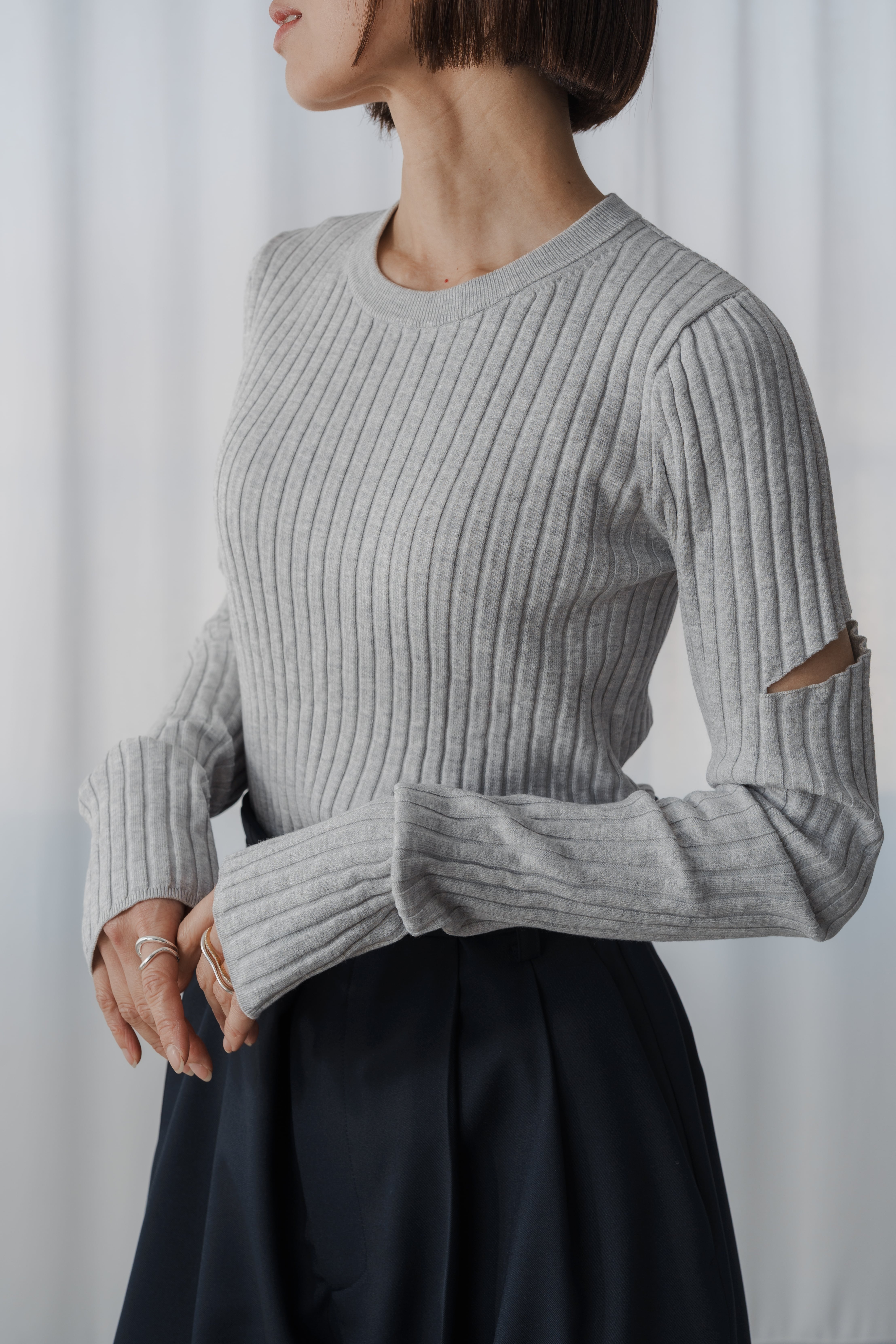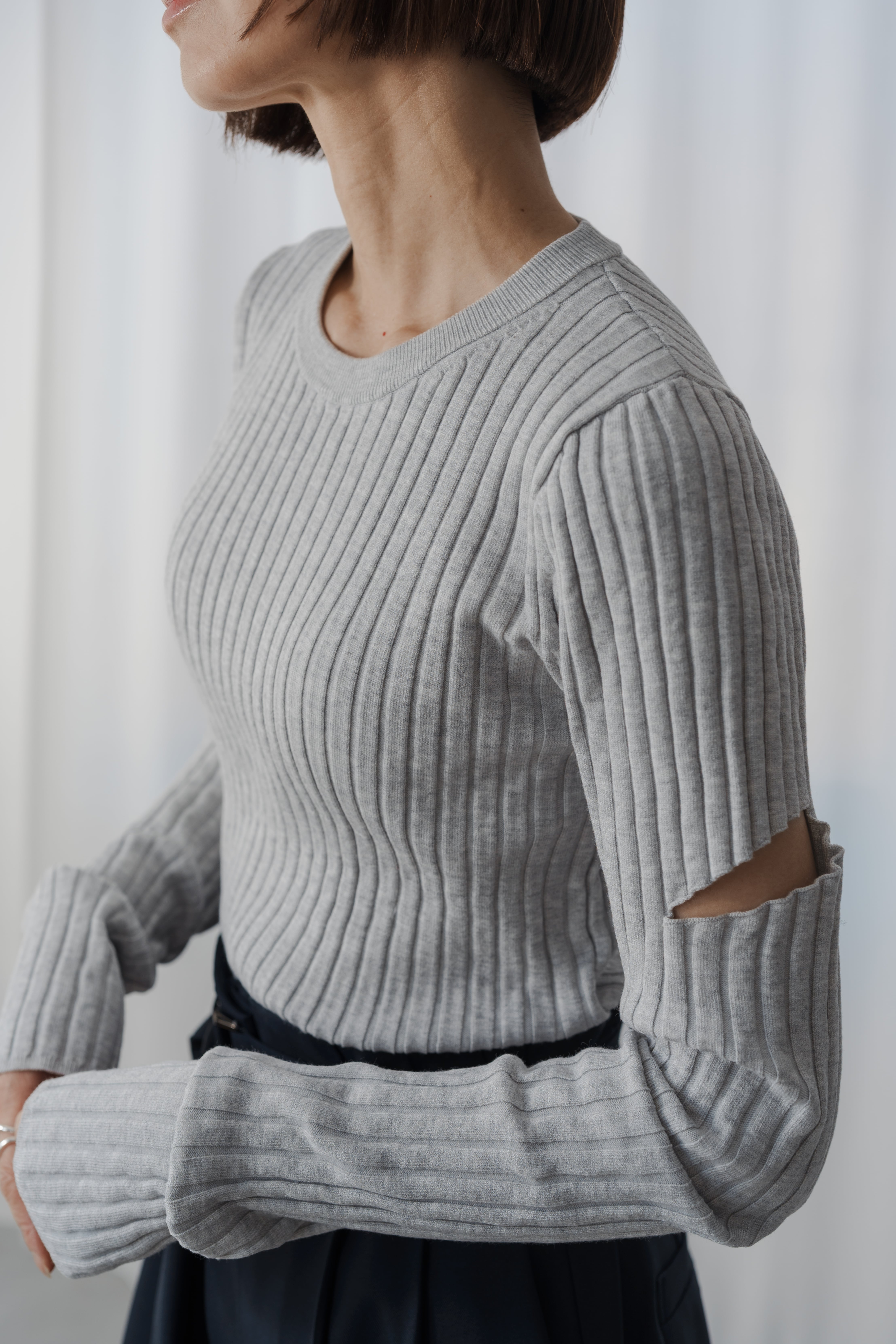 トレンドのカットアウトデティールを大人でも取り入れやすいデザインに落とし込んだスラッシュニット。