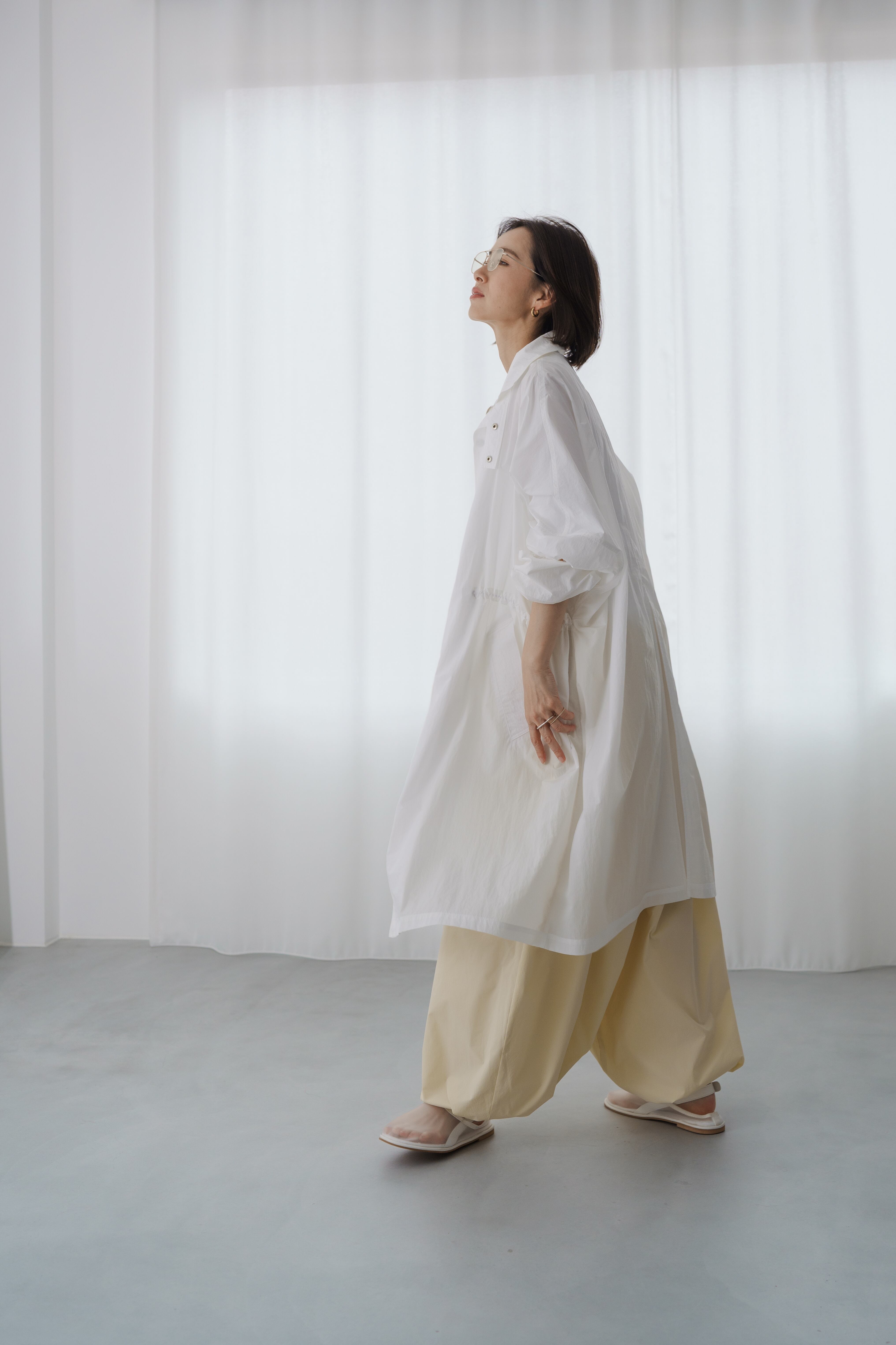 軽やかに揺れる、春夏のムードを纏うシアーバルーンパンツ。