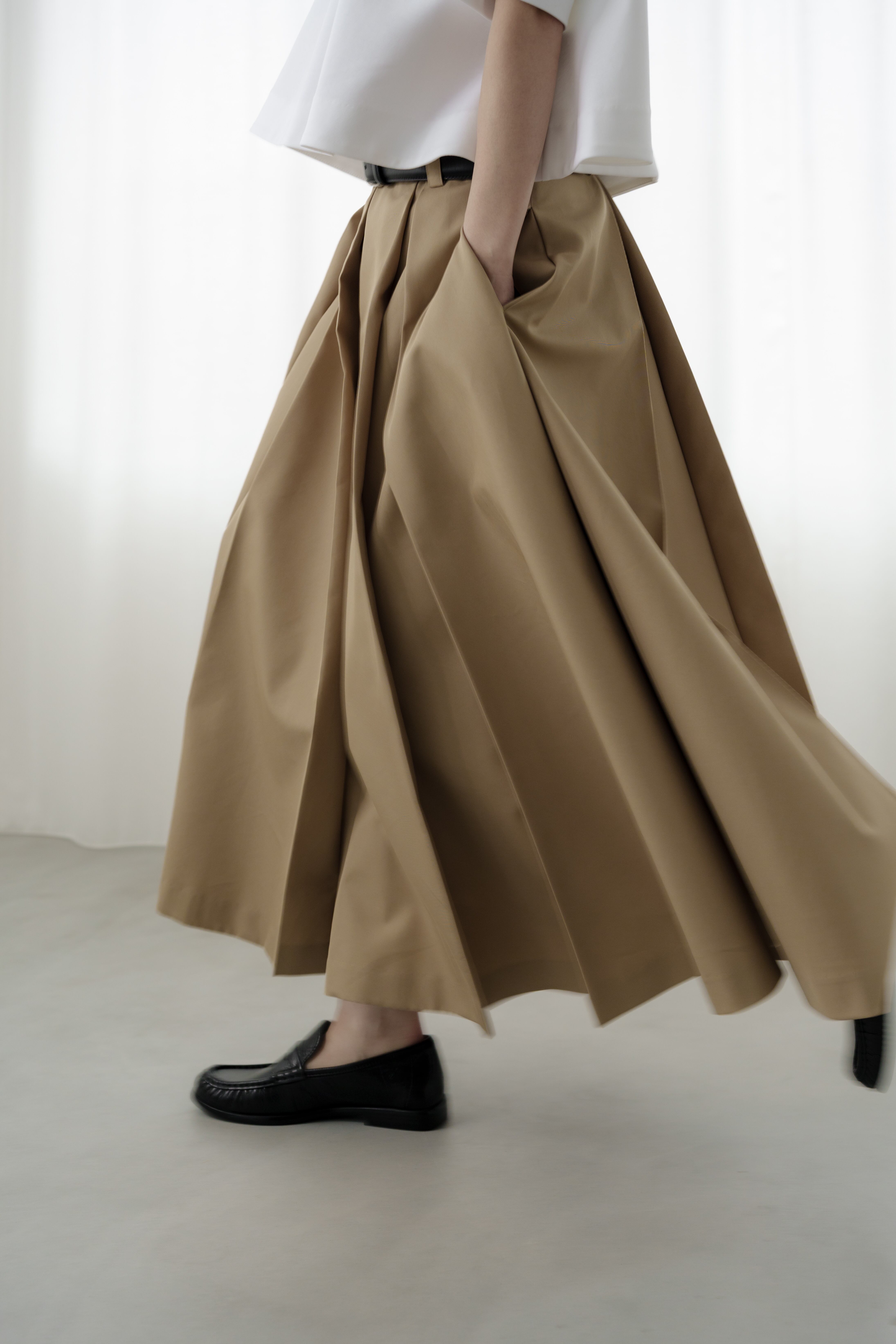 歩くたびに美しく広がる立体的なフレア。