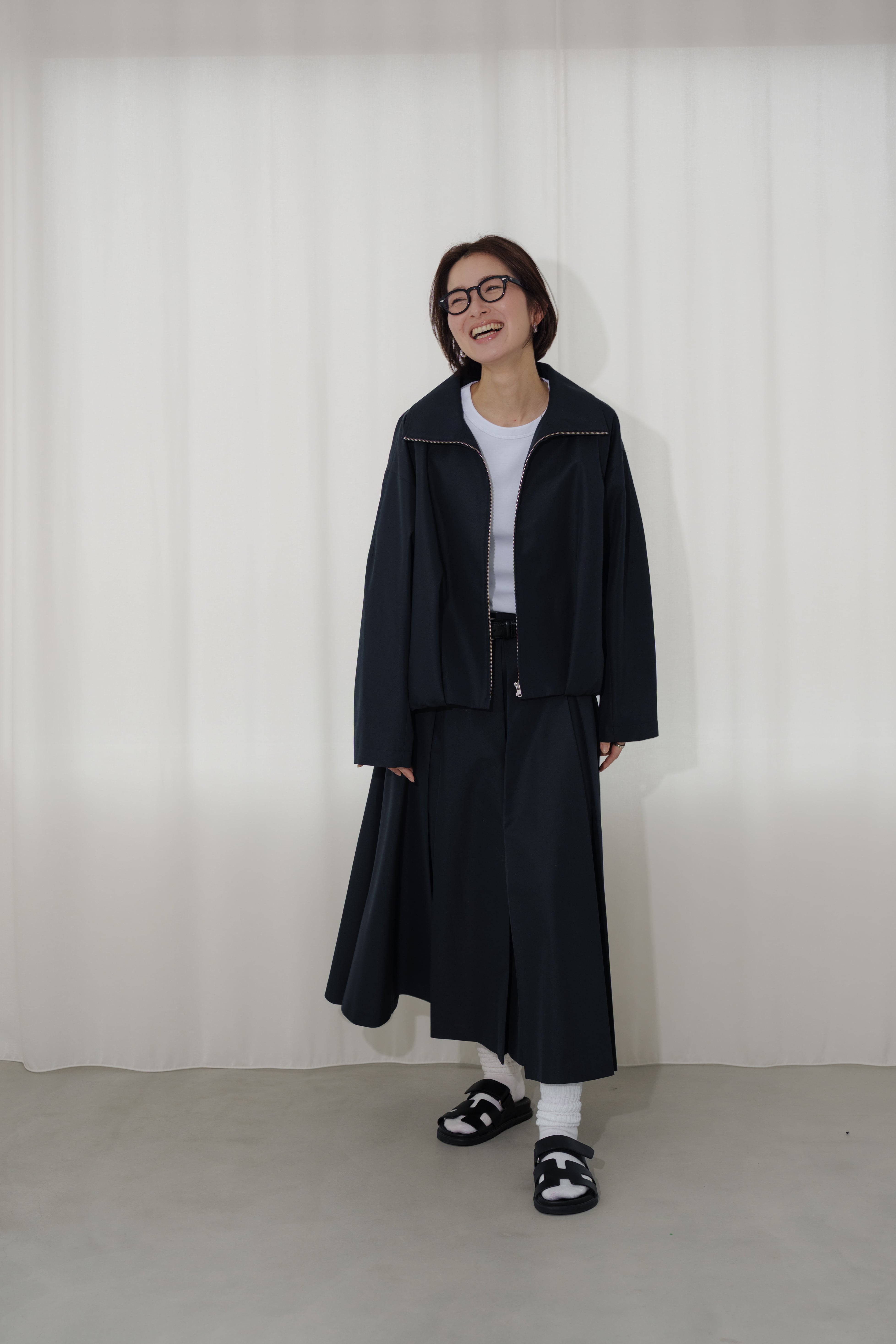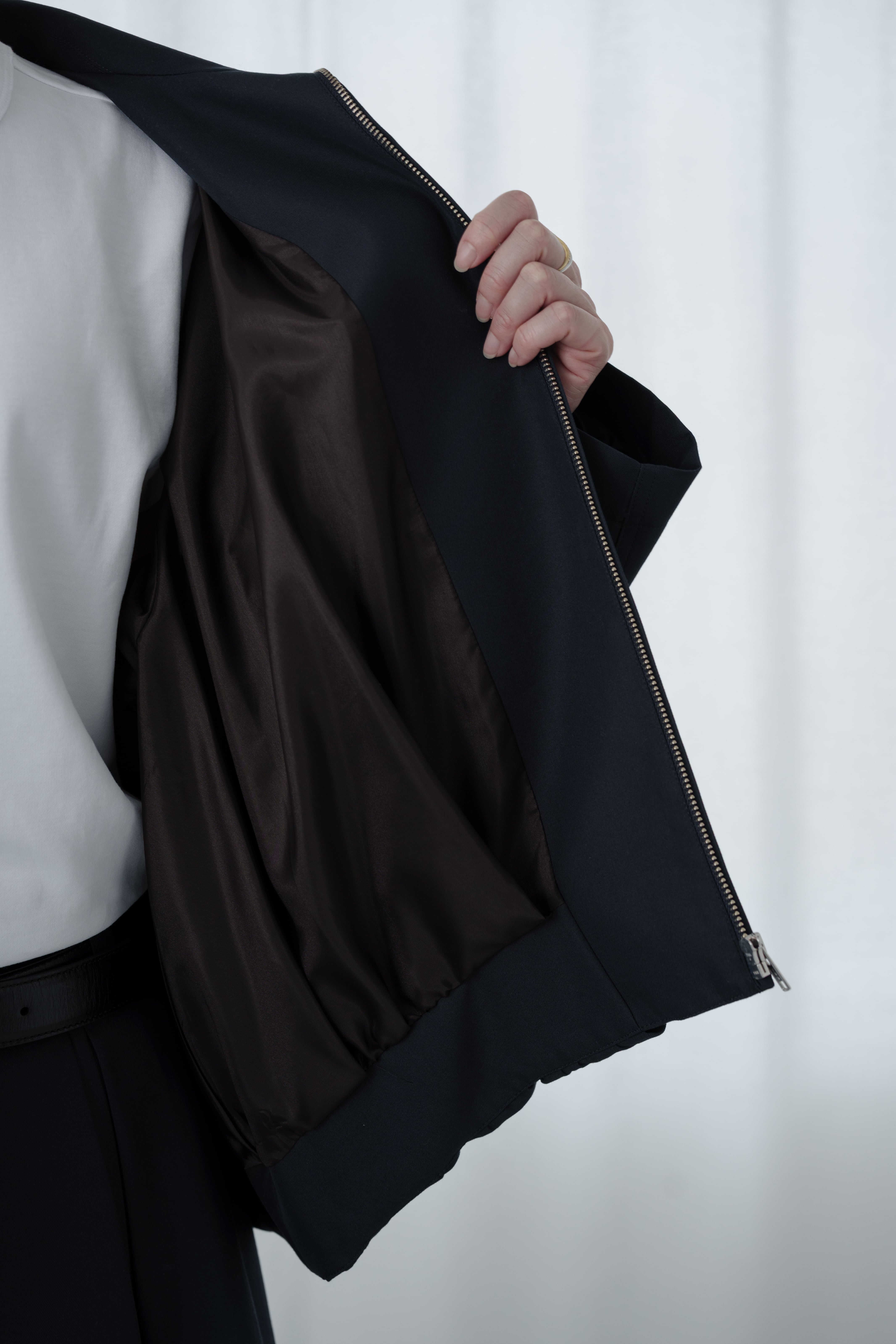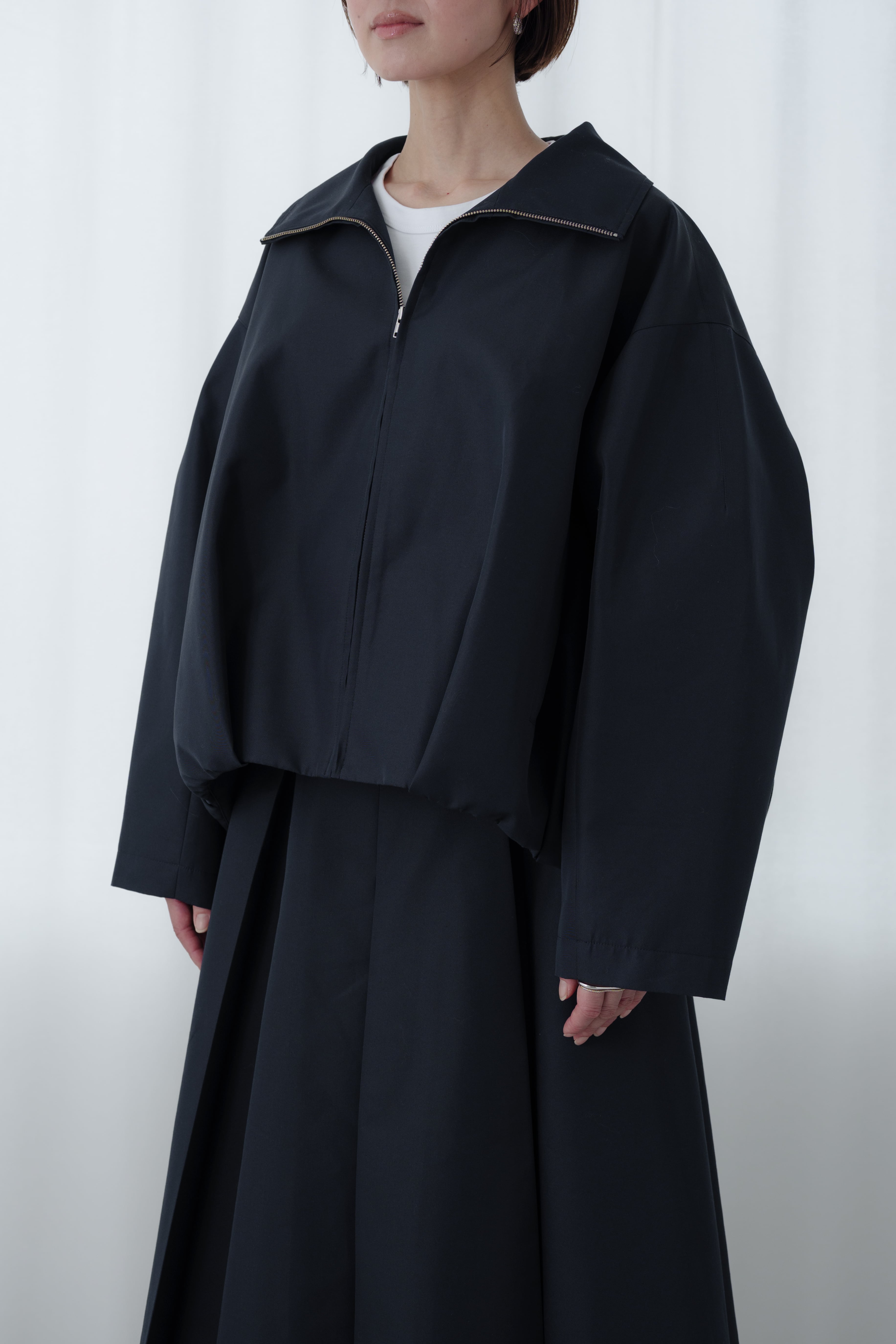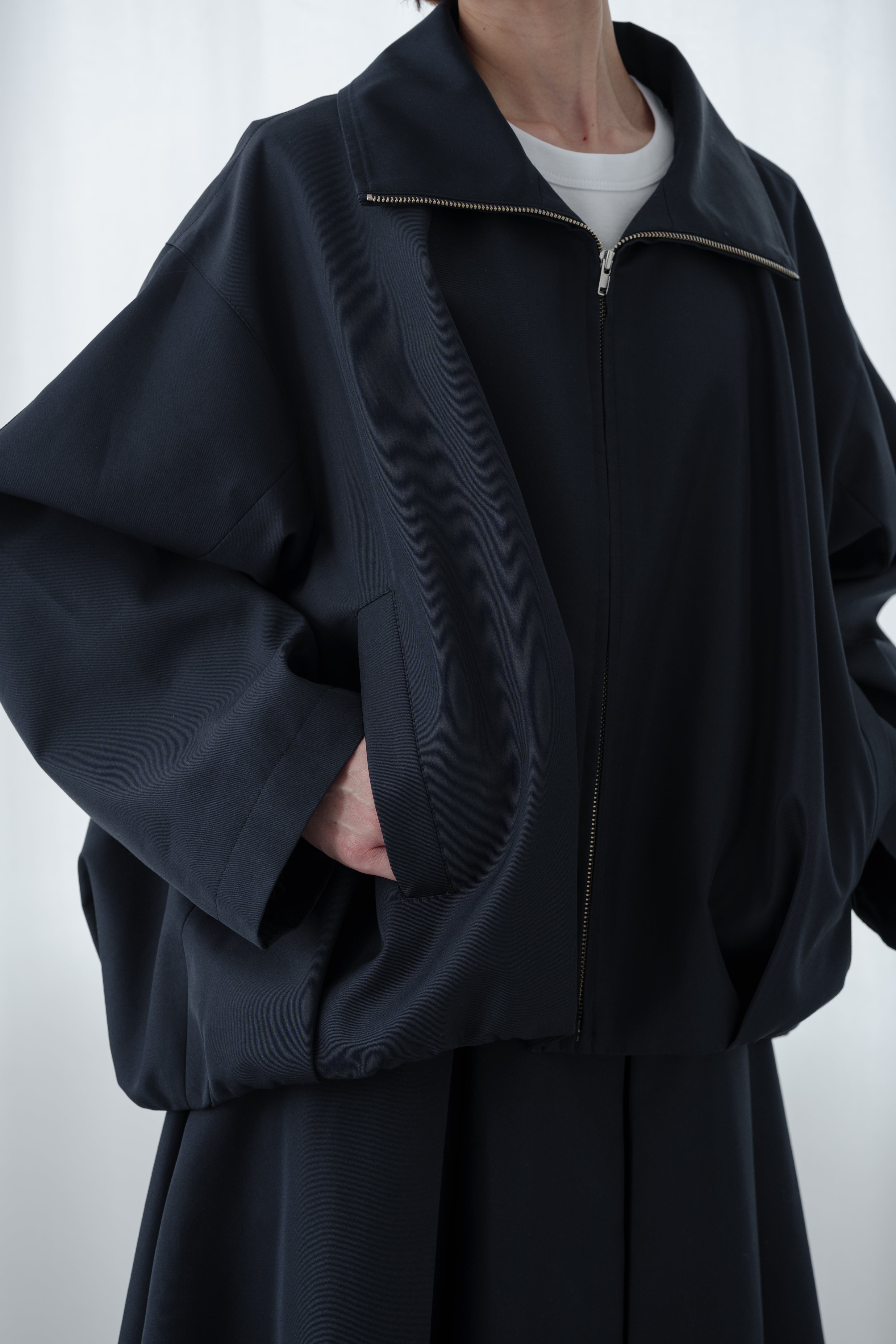 構築的なシルエットが魅力のブルゾン。