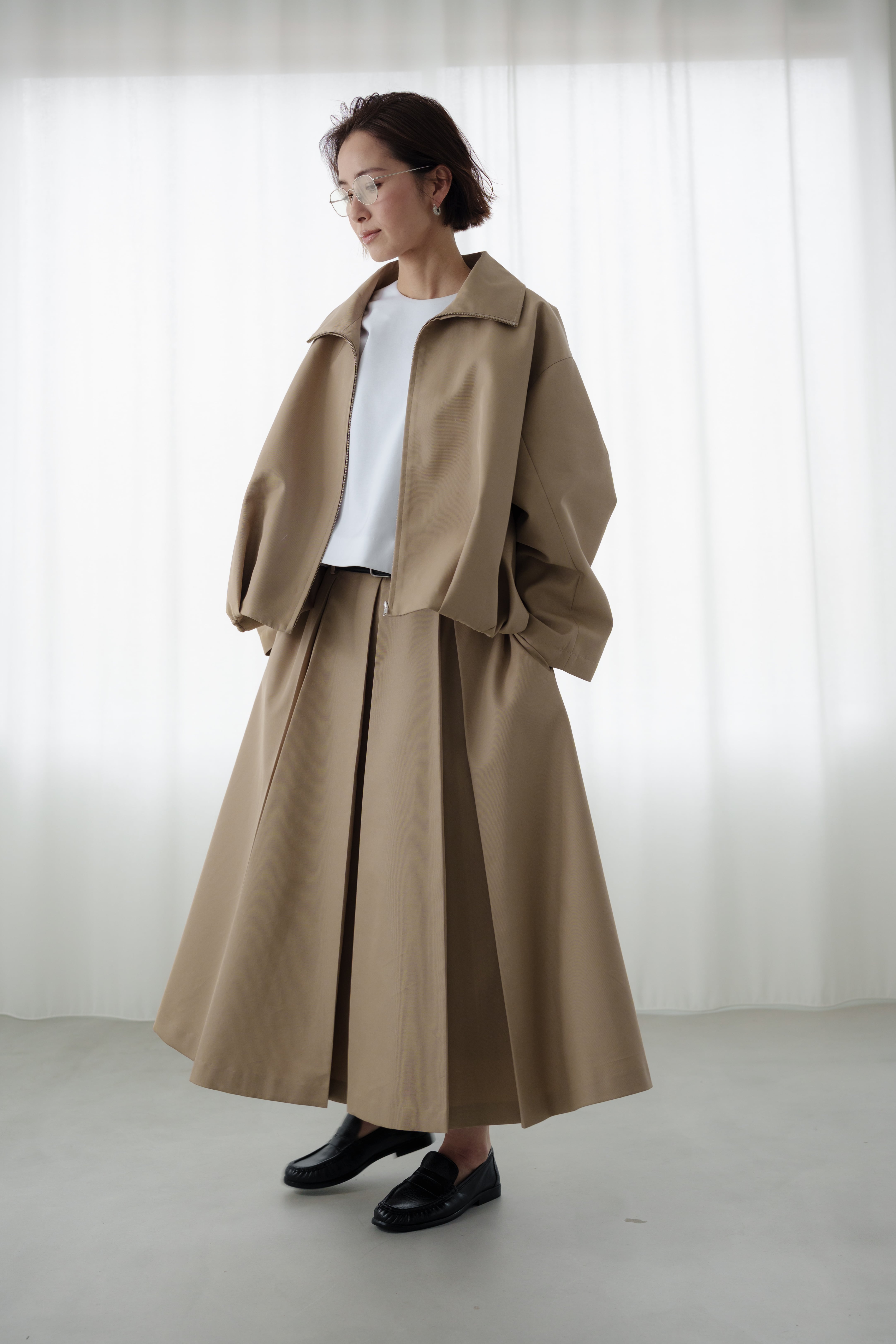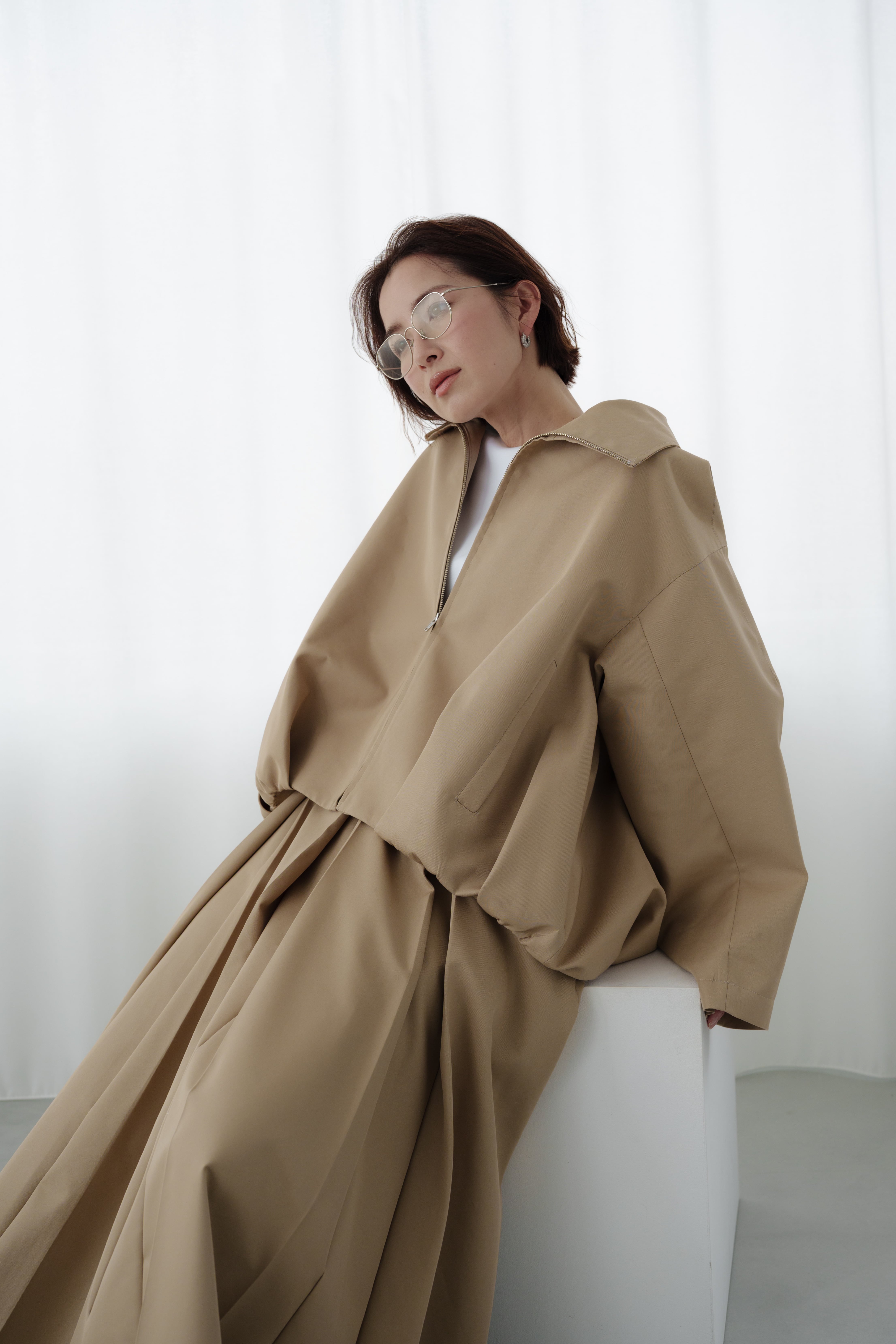 構築的なシルエットが魅力のブルゾン。