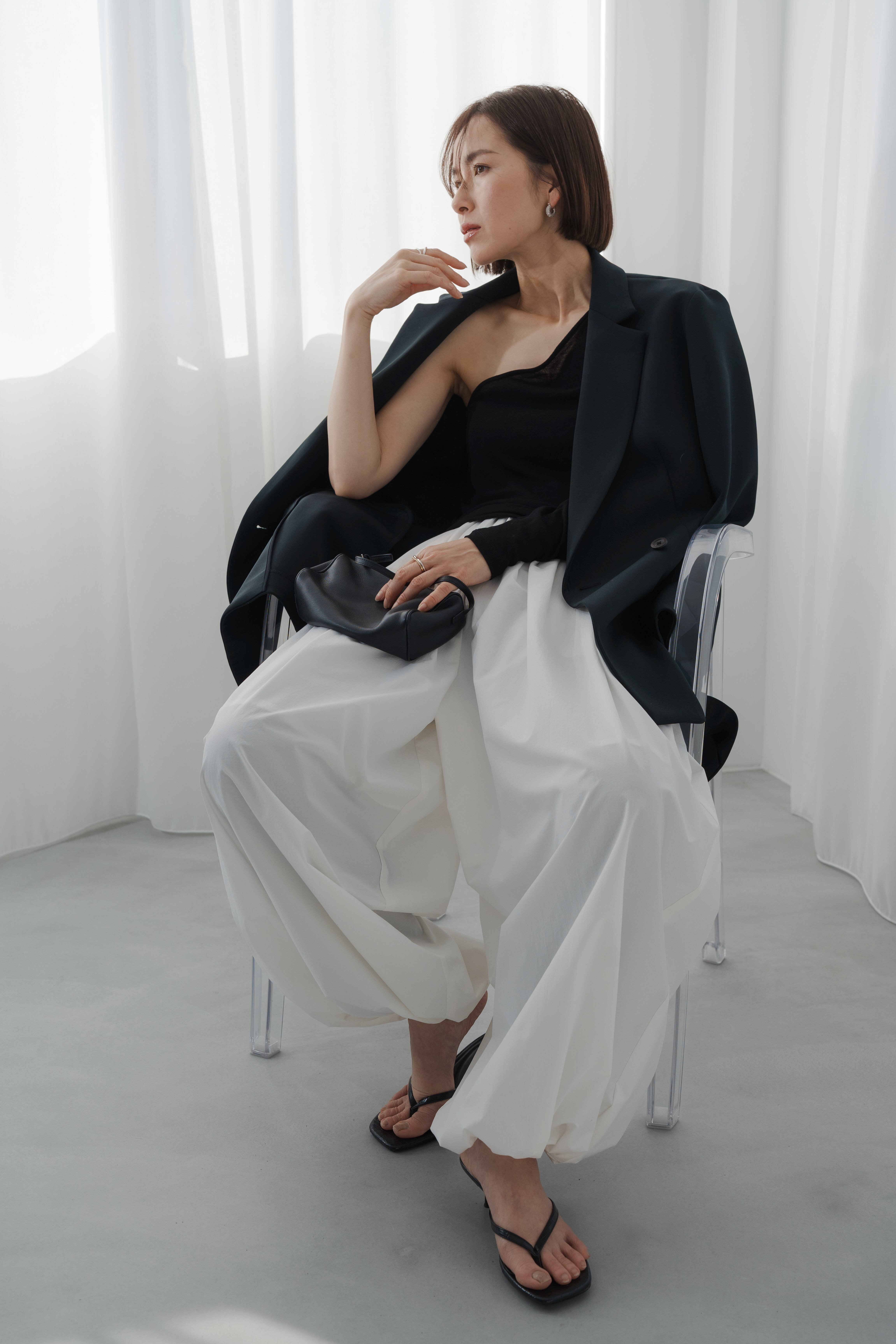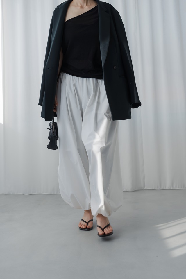 軽やかに揺れる、春夏のムードを纏うシアーバルーンパンツ。