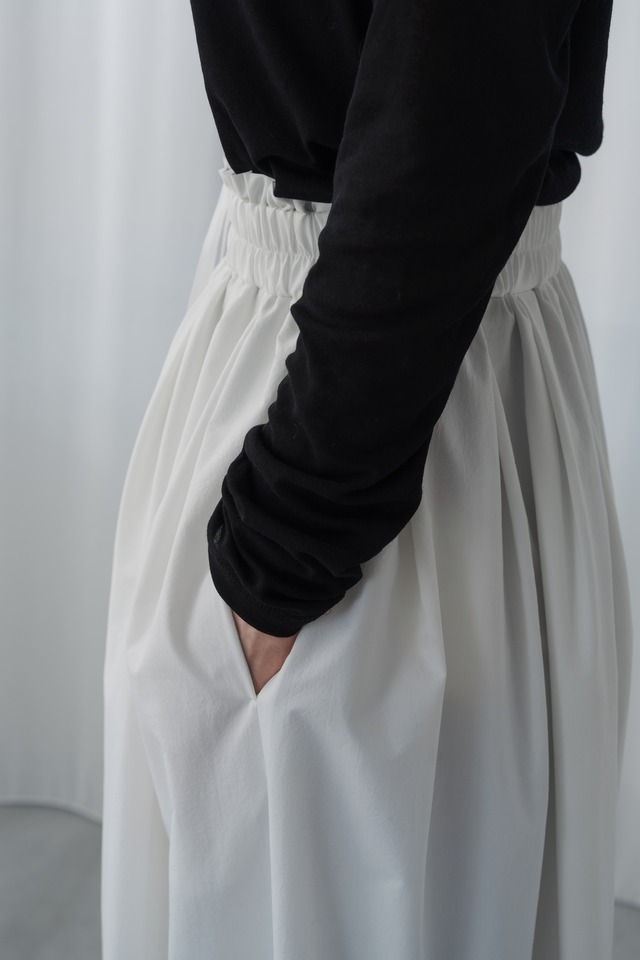 ウエストにはこだわりこタックを施し、ボリュームがありながらもカジュアルになり過ぎないシルエットに。